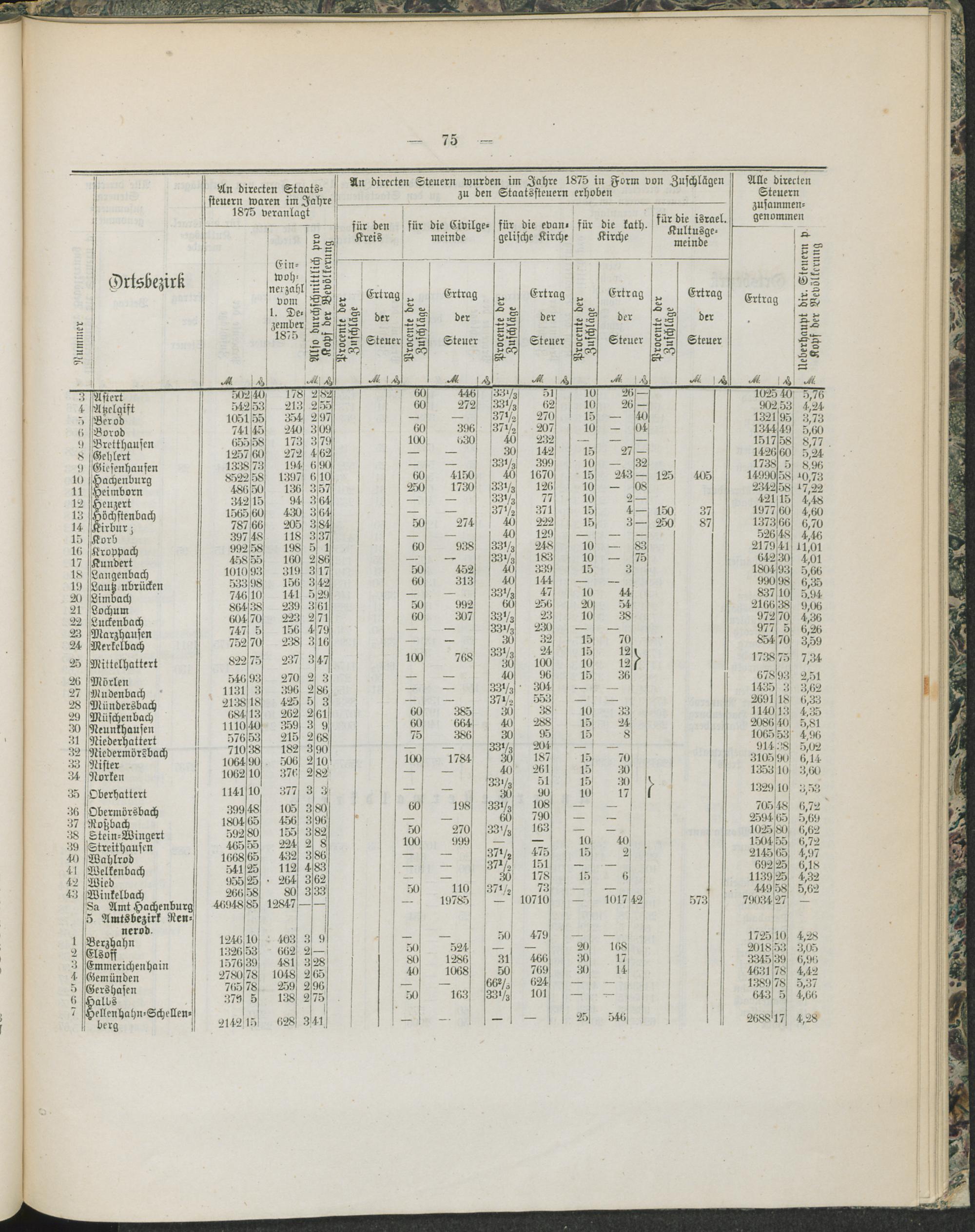 Alle vom Staate und den öffentlichen Korporationen im Regierungs-Bezirk Wiesbaden erhobenen directen Steuern.