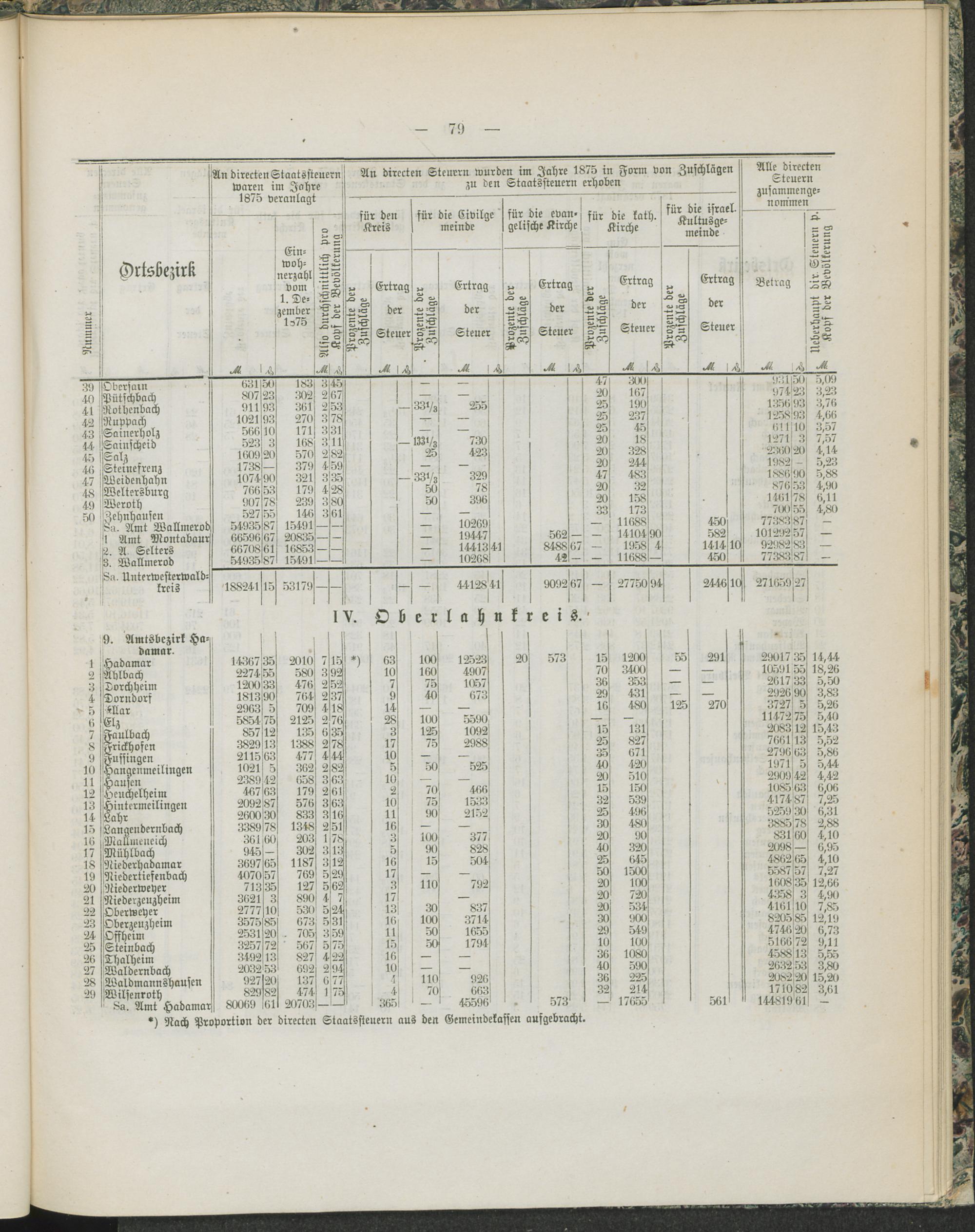 Alle vom Staate und den öffentlichen Korporationen im Regierungs-Bezirk Wiesbaden erhobenen directen Steuern.