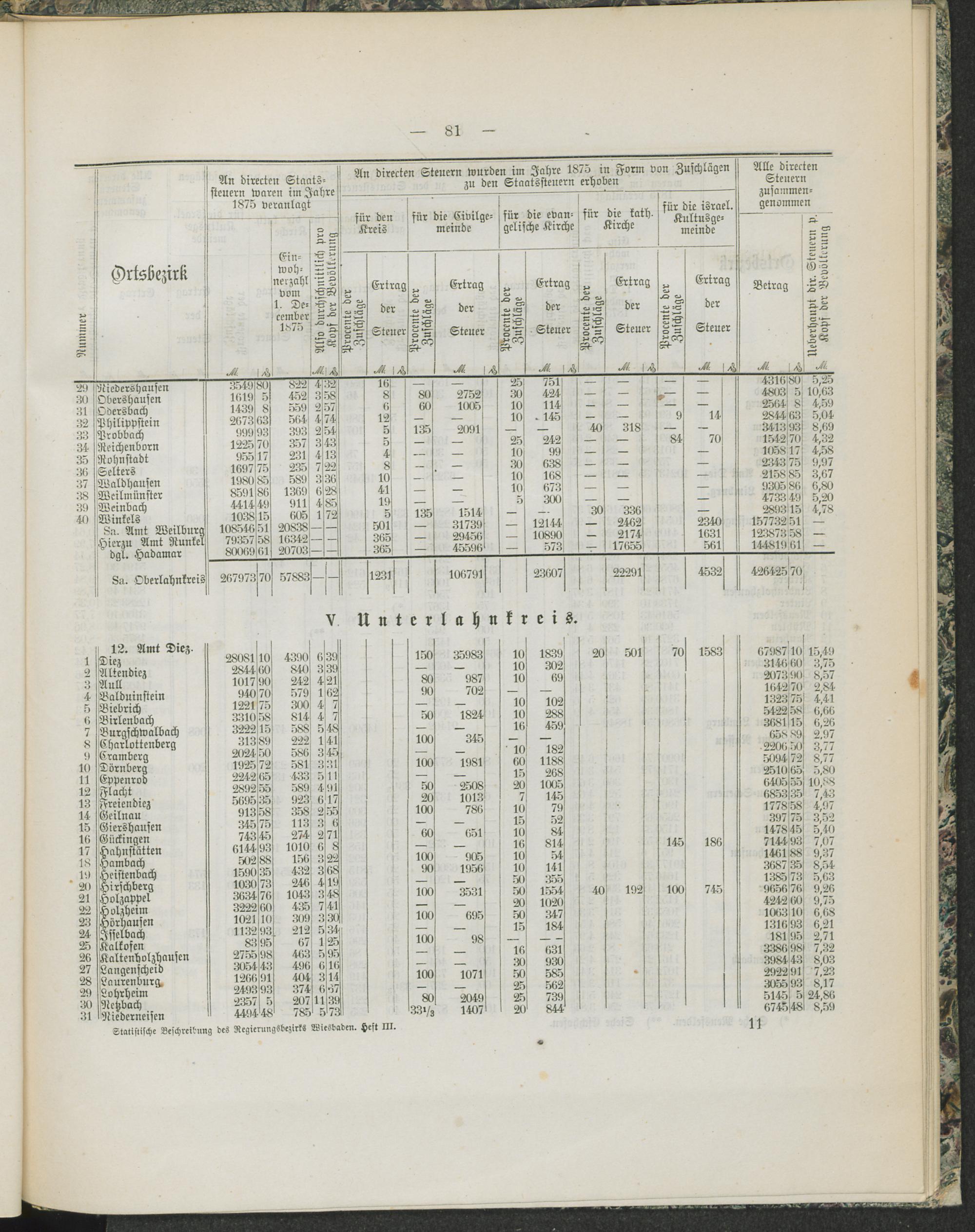 Alle vom Staate und den öffentlichen Korporationen im Regierungs-Bezirk Wiesbaden erhobenen directen Steuern.