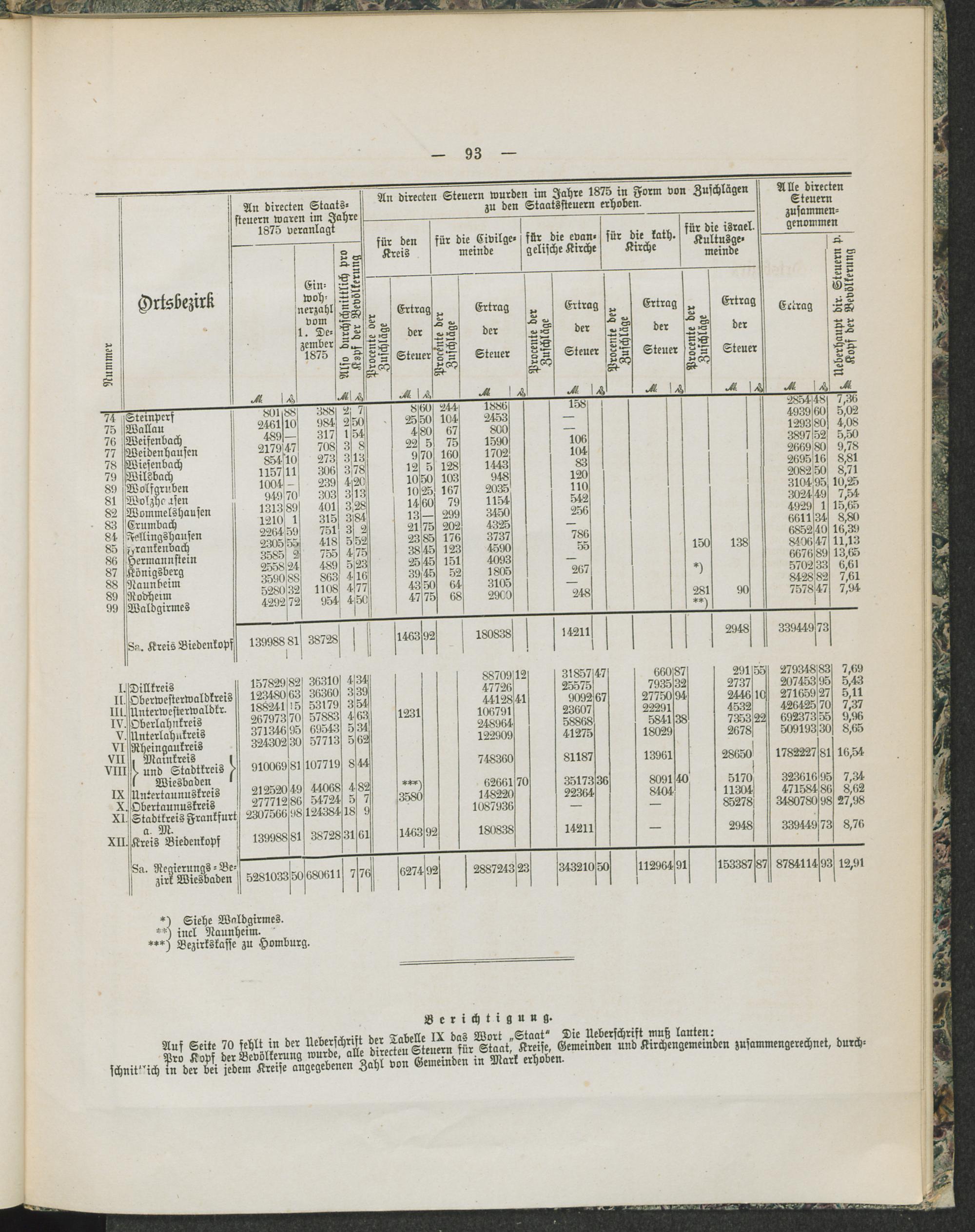 Alle vom Staate und den öffentlichen Korporationen im Regierungs-Bezirk Wiesbaden erhobenen directen Steuern.