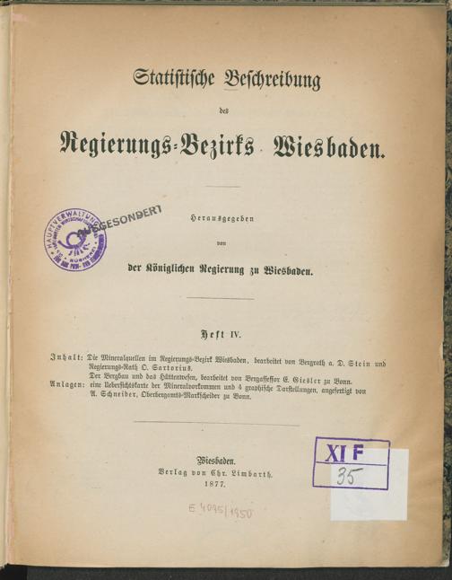 4 (1877) Die Mineralquellen im Regierungs-Bezirk Wiesbaden ... / bearb. von Stein ... / hrsg. von Königlicher Regierung zu Wiesbaden