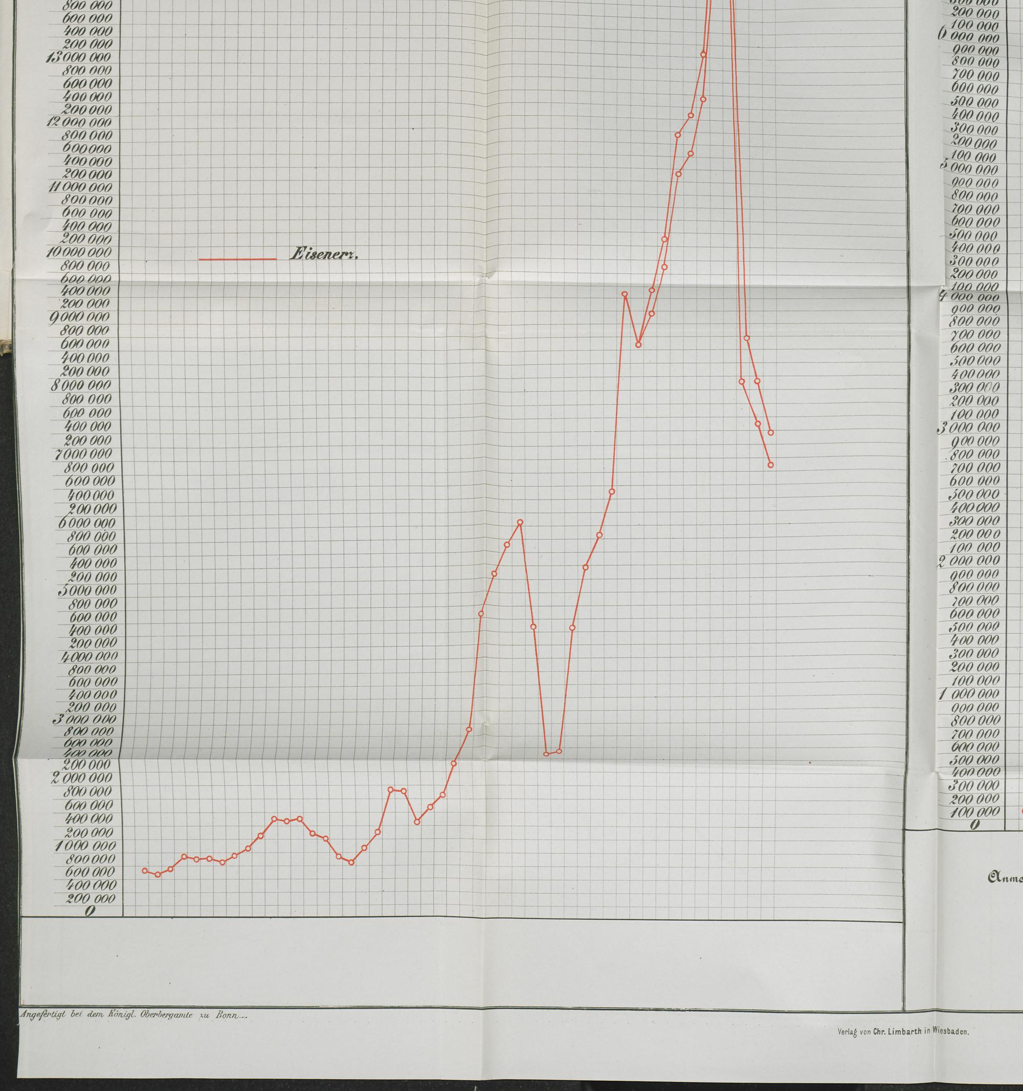 Graphische Darstellung der Menge und des Werthes der der Bergwergsproducte im Regierungsbezirk Wiesbaden