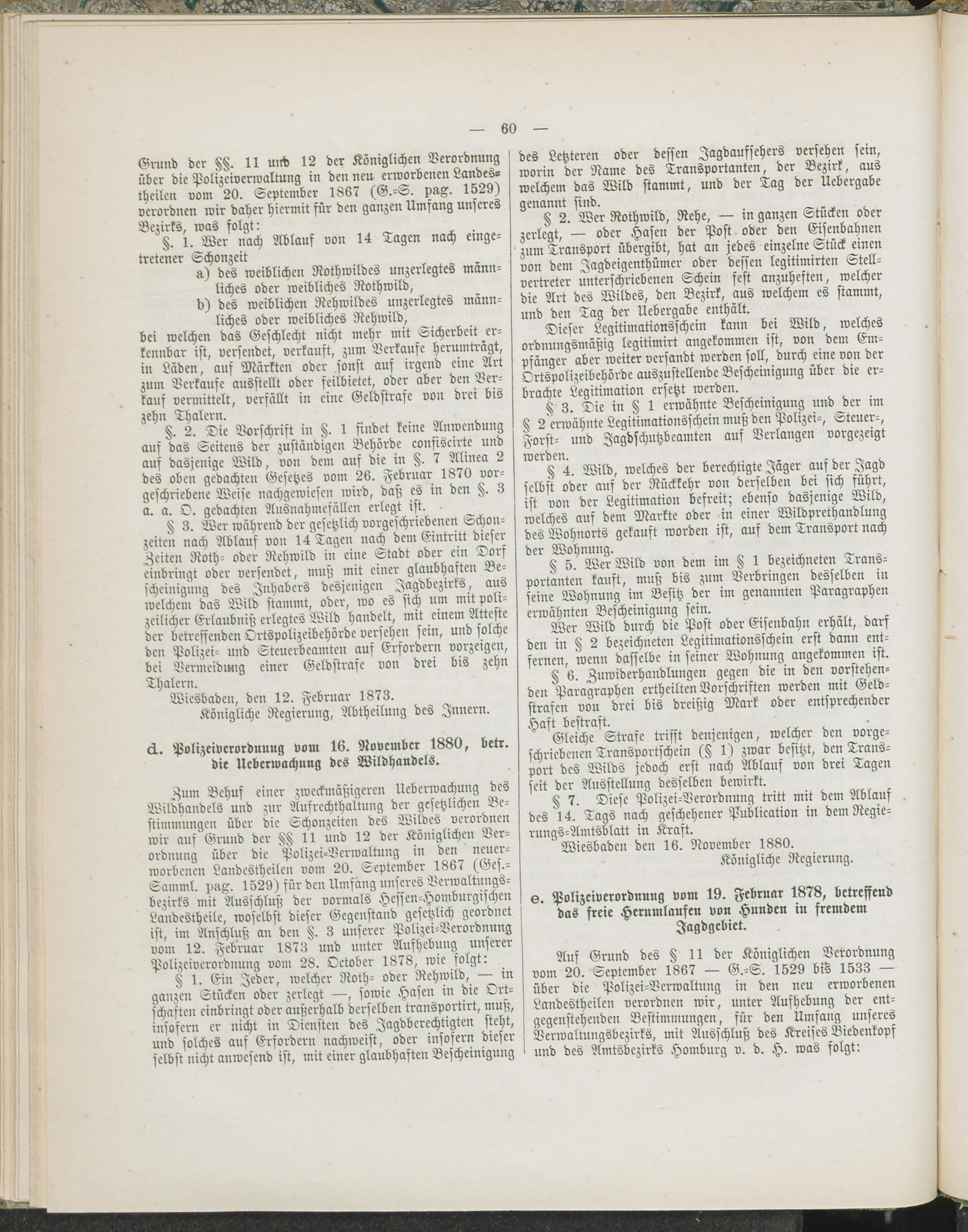 6 (1882) Jagd und Fischerei / bearb. von Adolf Tilmann / hrsg. von Königlicher Regierung zu Wiesbaden