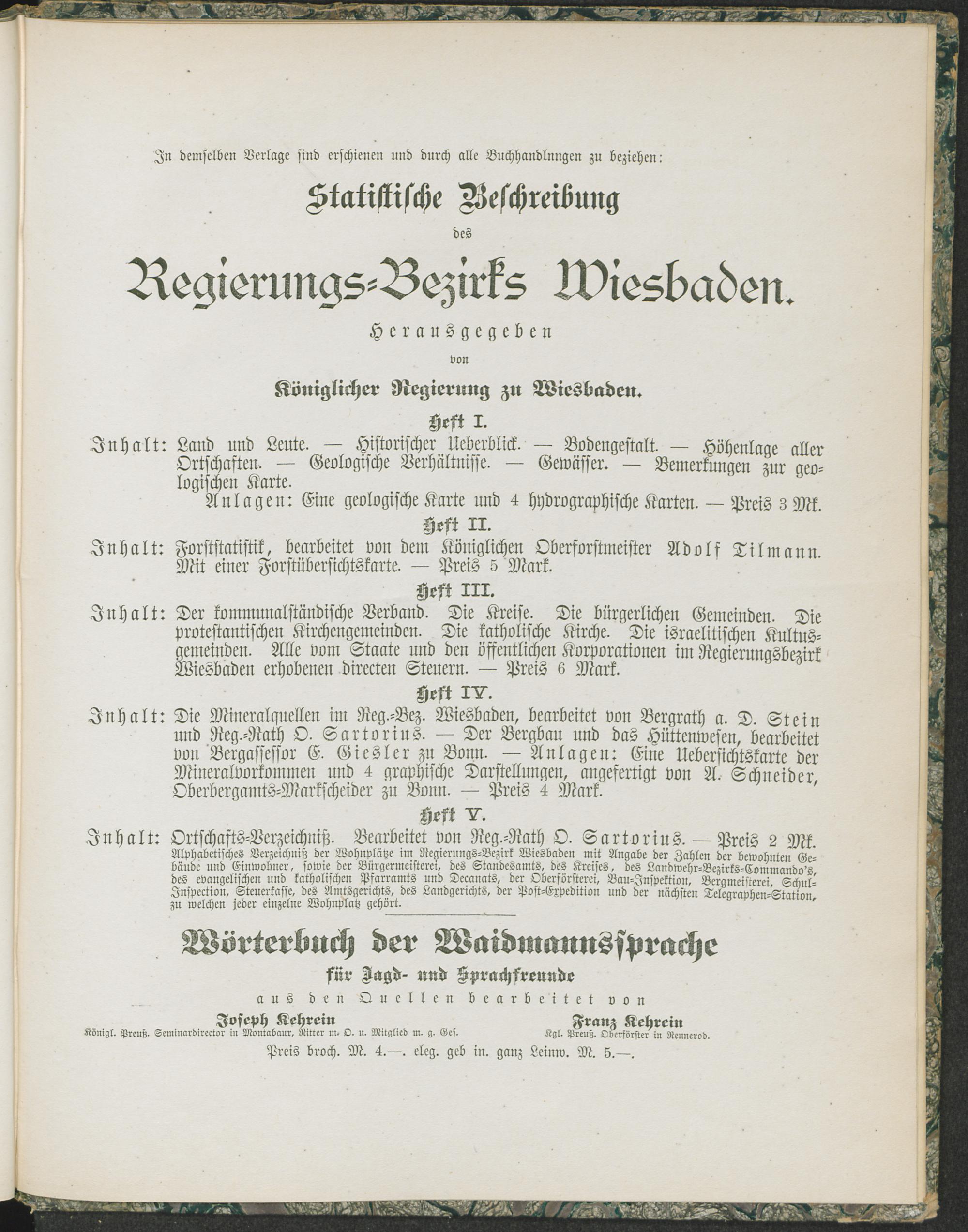 6 (1882) Jagd und Fischerei / bearb. von Adolf Tilmann / hrsg. von Königlicher Regierung zu Wiesbaden