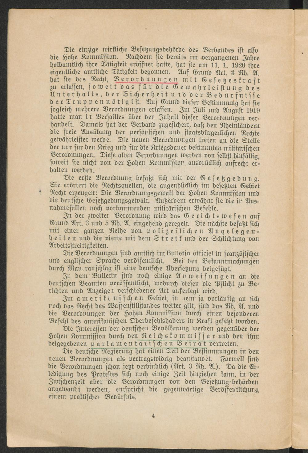 IV. Verordnung der Hohen Interalliierten Rheinlandkommission, betreffend die Verwaltung des Brückenkopfes Kehl.