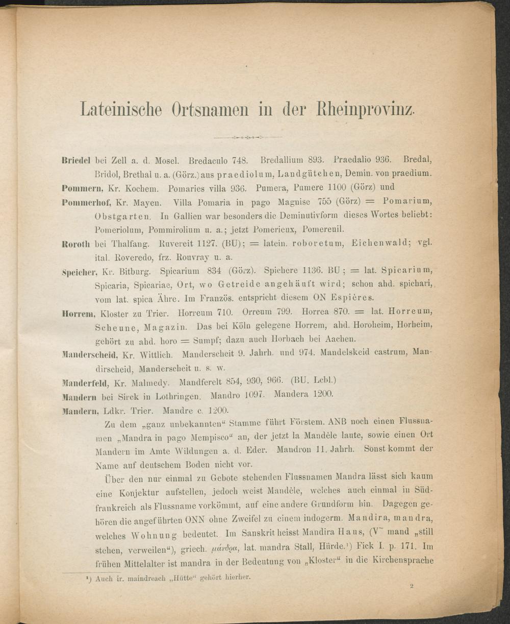 Keltische und lateinische Ortsnamen in der Rheinprovinz