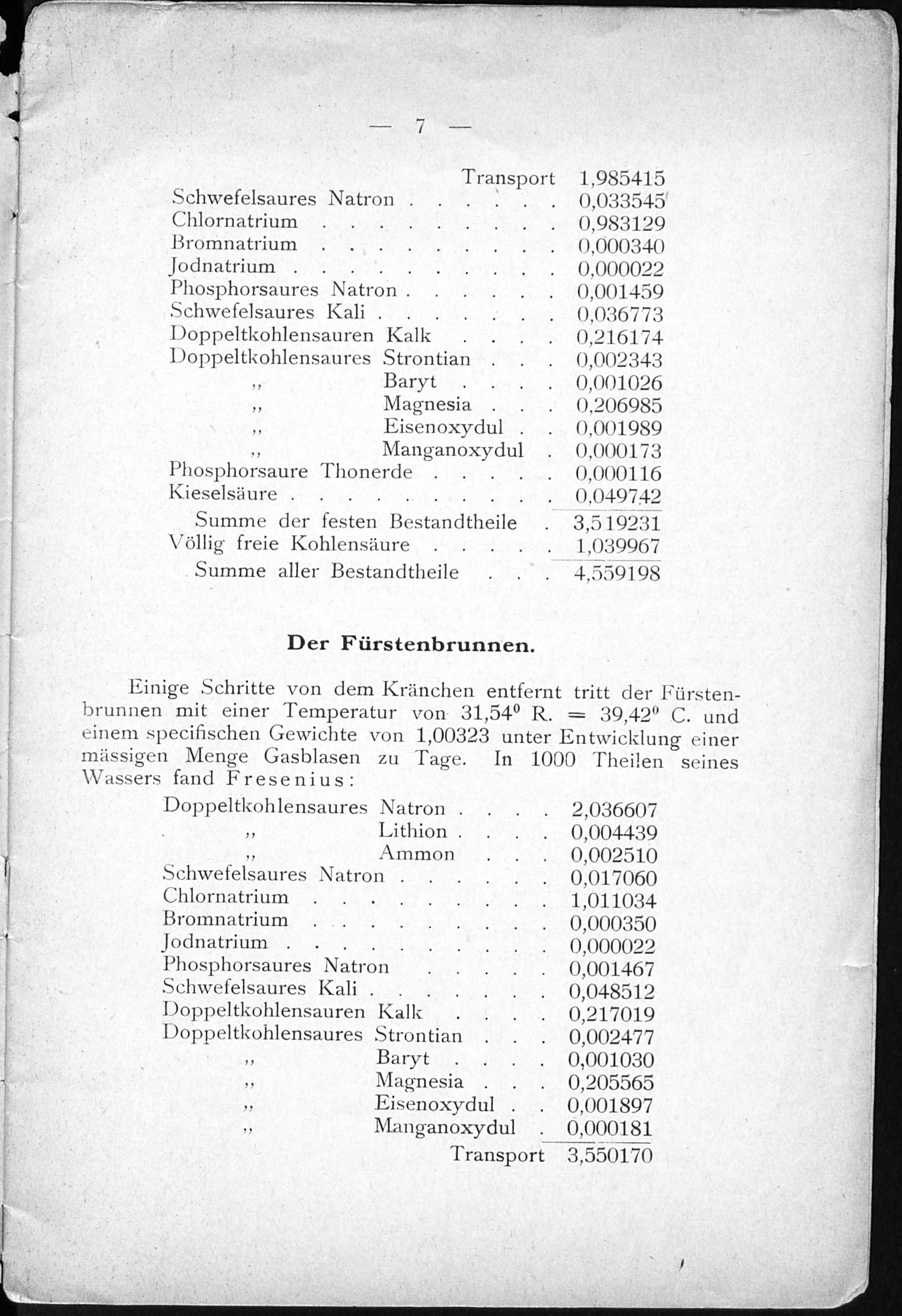 II. Die fiskalischen Mineralquellen und deren chemisch-physikalische Eigenschaft...