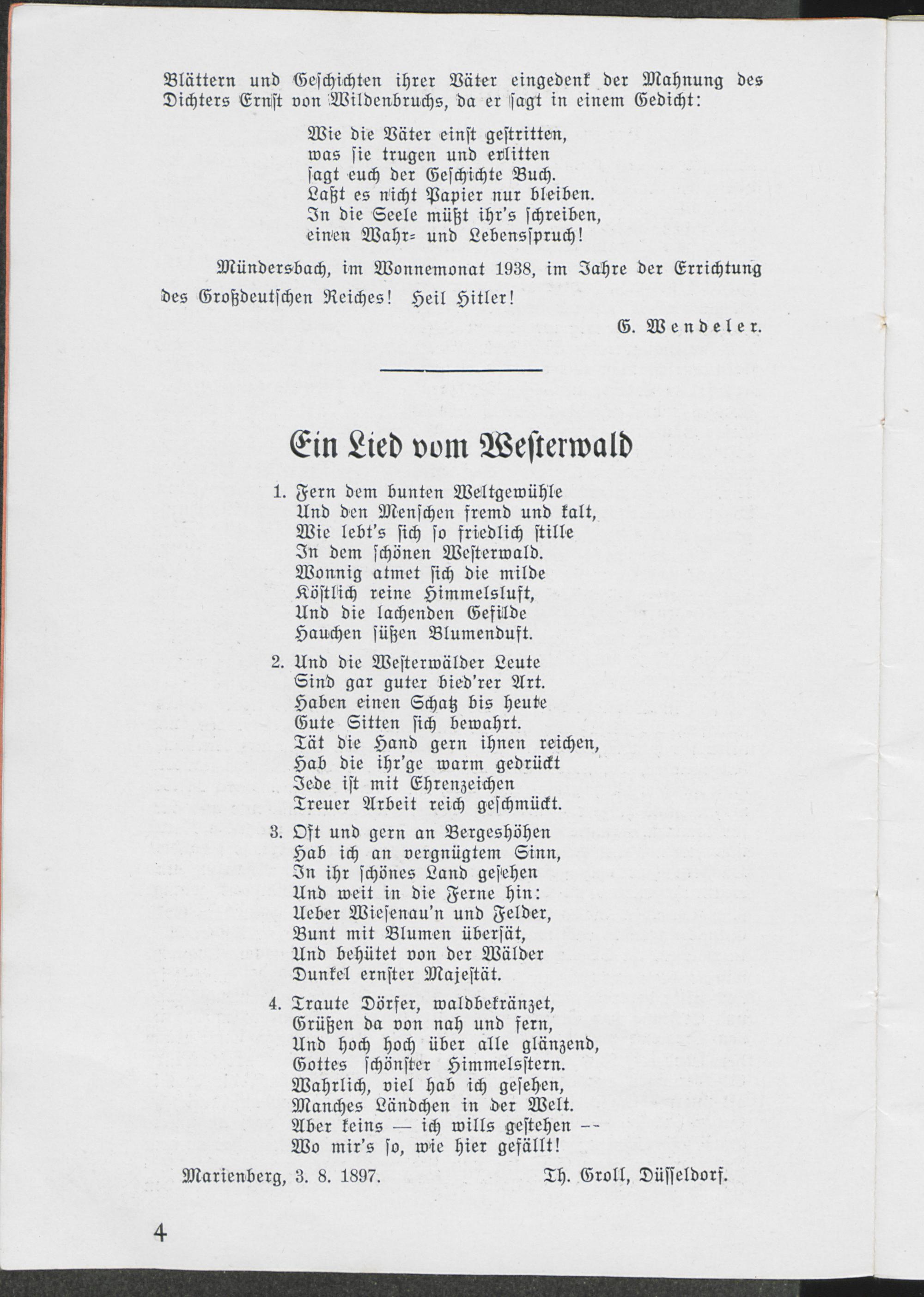 Mündersbach : aus der Geschichte eines Westerwalddorfes und seiner Umgebung ; zusammengestellt anläßlich der Hundertjahrfeier des Männergesangverein Sängerbund Mündersbach / von G. Wendeler
