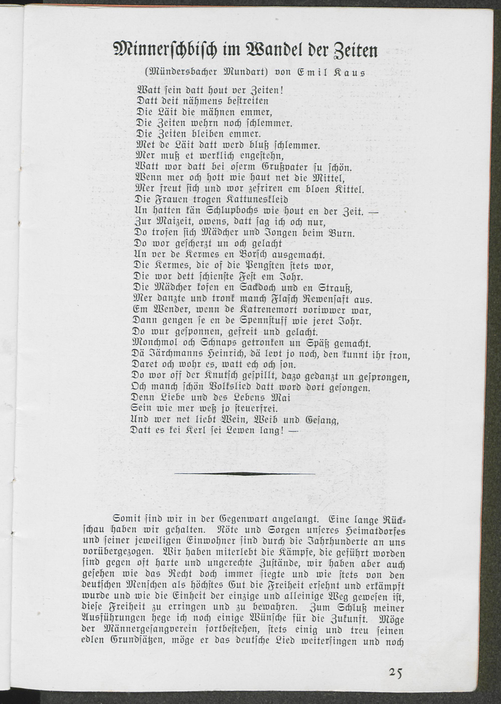 Festprolog zum 100. Jubiläum des Männergesangvereins "Sängerbund"