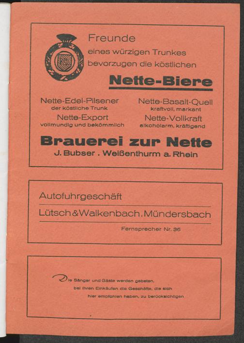 Festordnung zur 100-Jahrfeier des MGV "Sängerbund" am 2., 3. und 4. Juli 1938