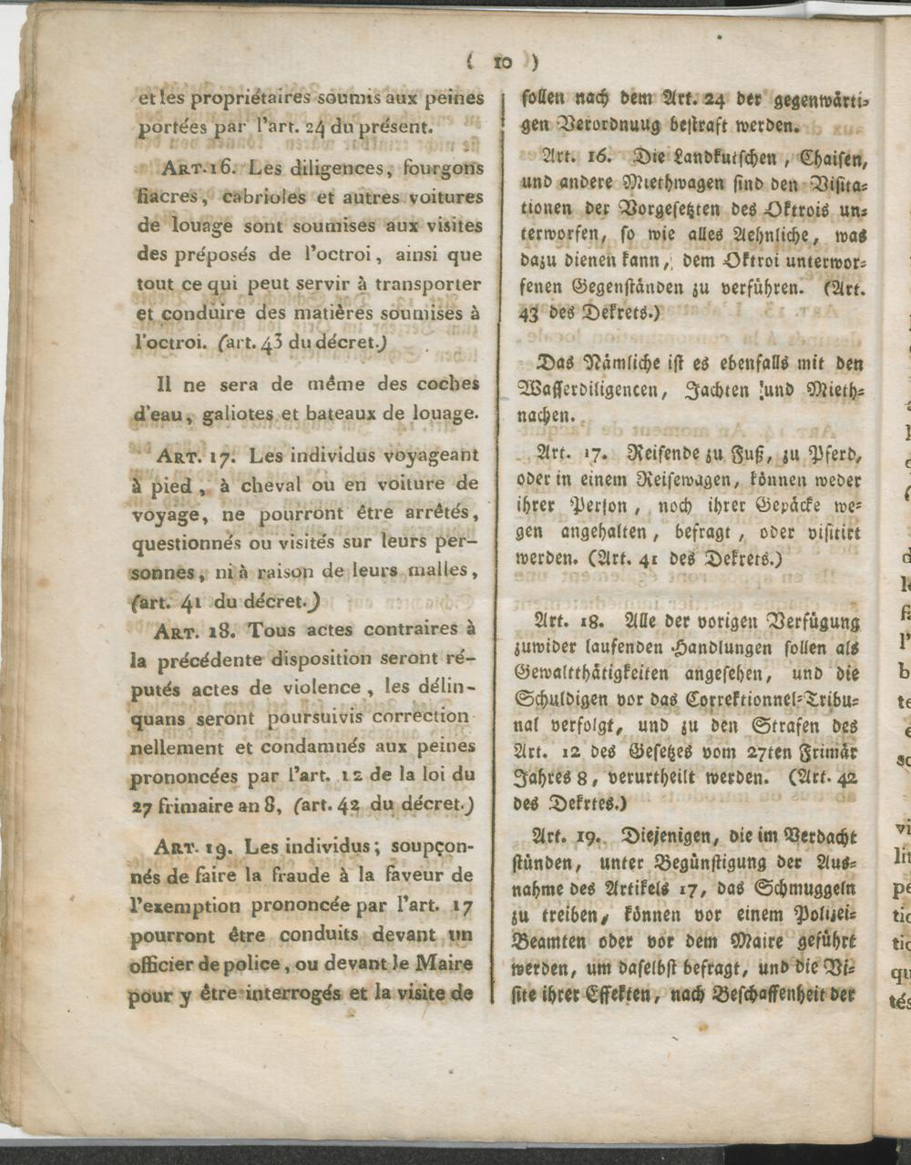 Réglement pour l'Octroi de la Commune d'Andernach. / Verordnung über das Octroi der Gemeinde Andernach.