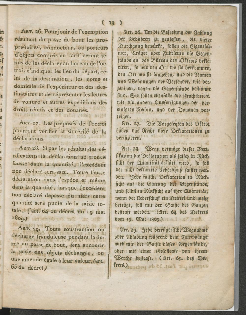 Réglement pour l'Octroi de la Commune d'Andernach. / Verordnung über das Octroi der Gemeinde Andernach.