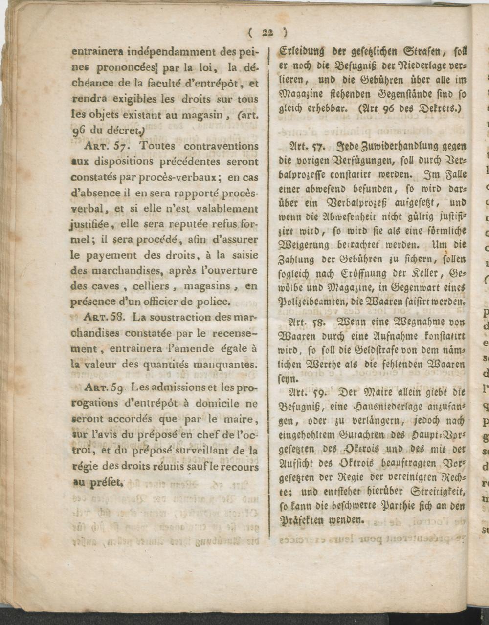 Réglement pour l'Octroi de la Commune d'Andernach. / Verordnung über das Octroi der Gemeinde Andernach.
