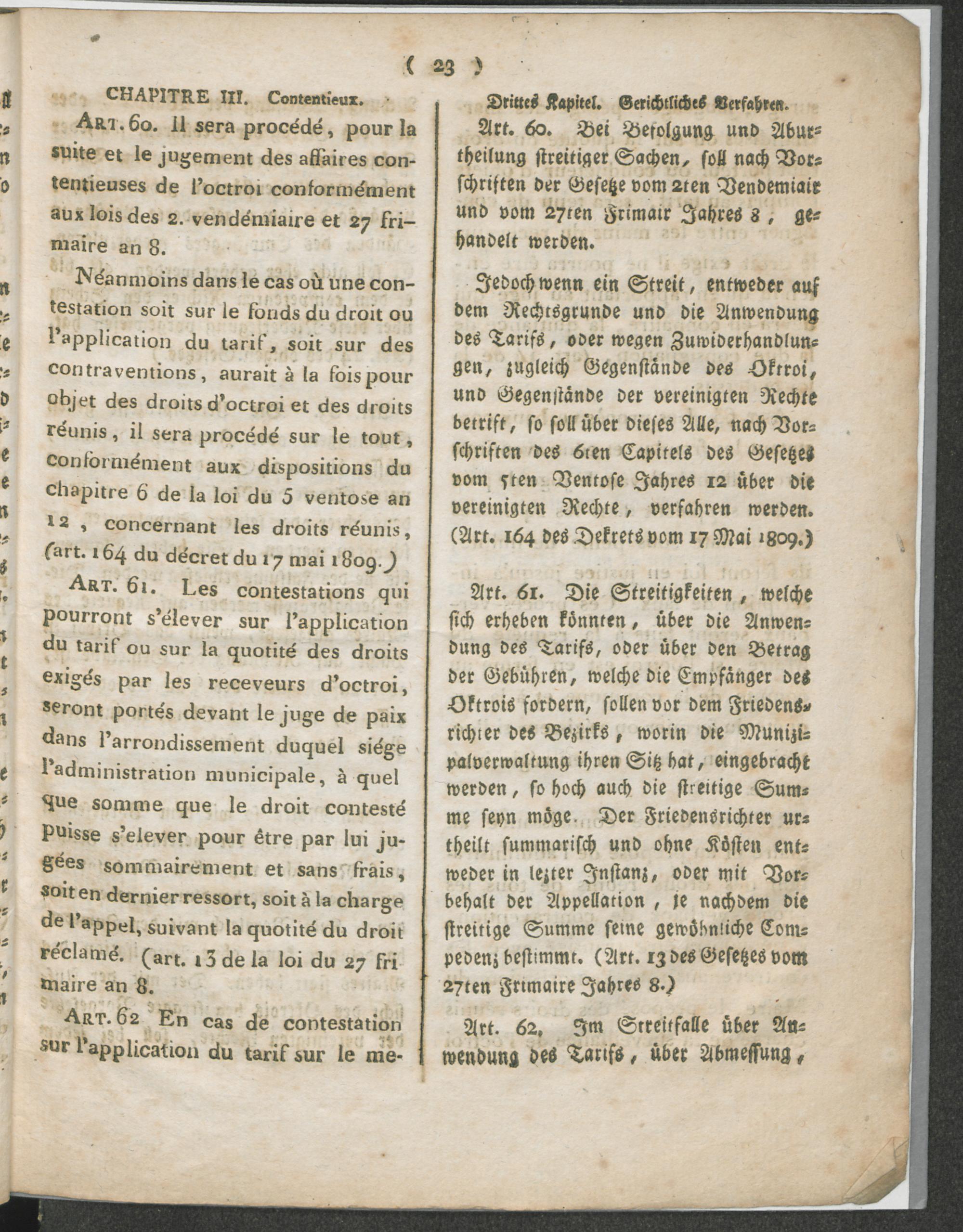 Réglement pour l'Octroi de la Commune d'Andernach. / Verordnung über das Octroi der Gemeinde Andernach.