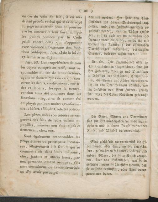 Réglement pour l'Octroi de la Commune d'Andernach. / Verordnung über das Octroi der Gemeinde Andernach.