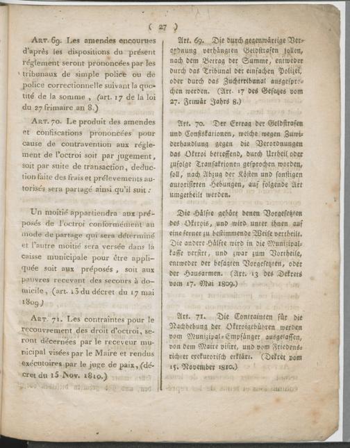 Réglement pour l'Octroi de la Commune d'Andernach. / Verordnung über das Octroi der Gemeinde Andernach.