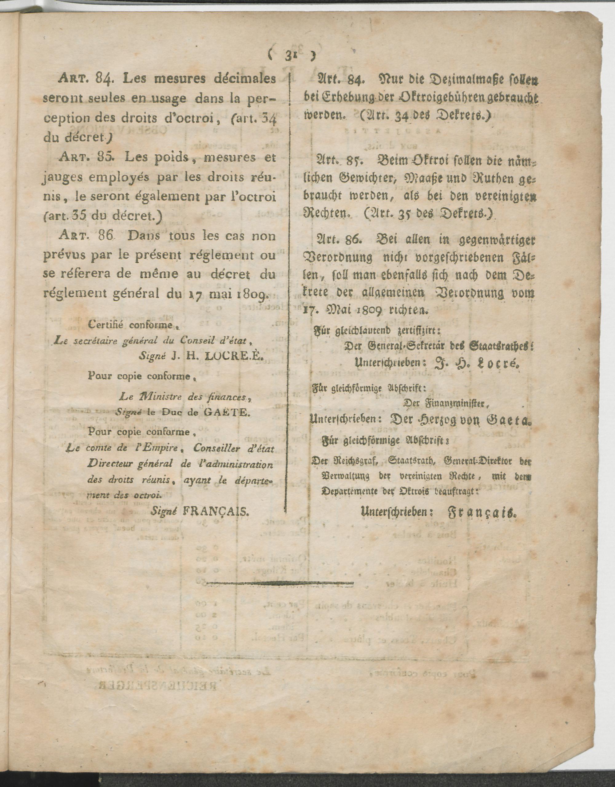 Réglement pour l'Octroi de la Commune d'Andernach. / Verordnung über das Octroi der Gemeinde Andernach.