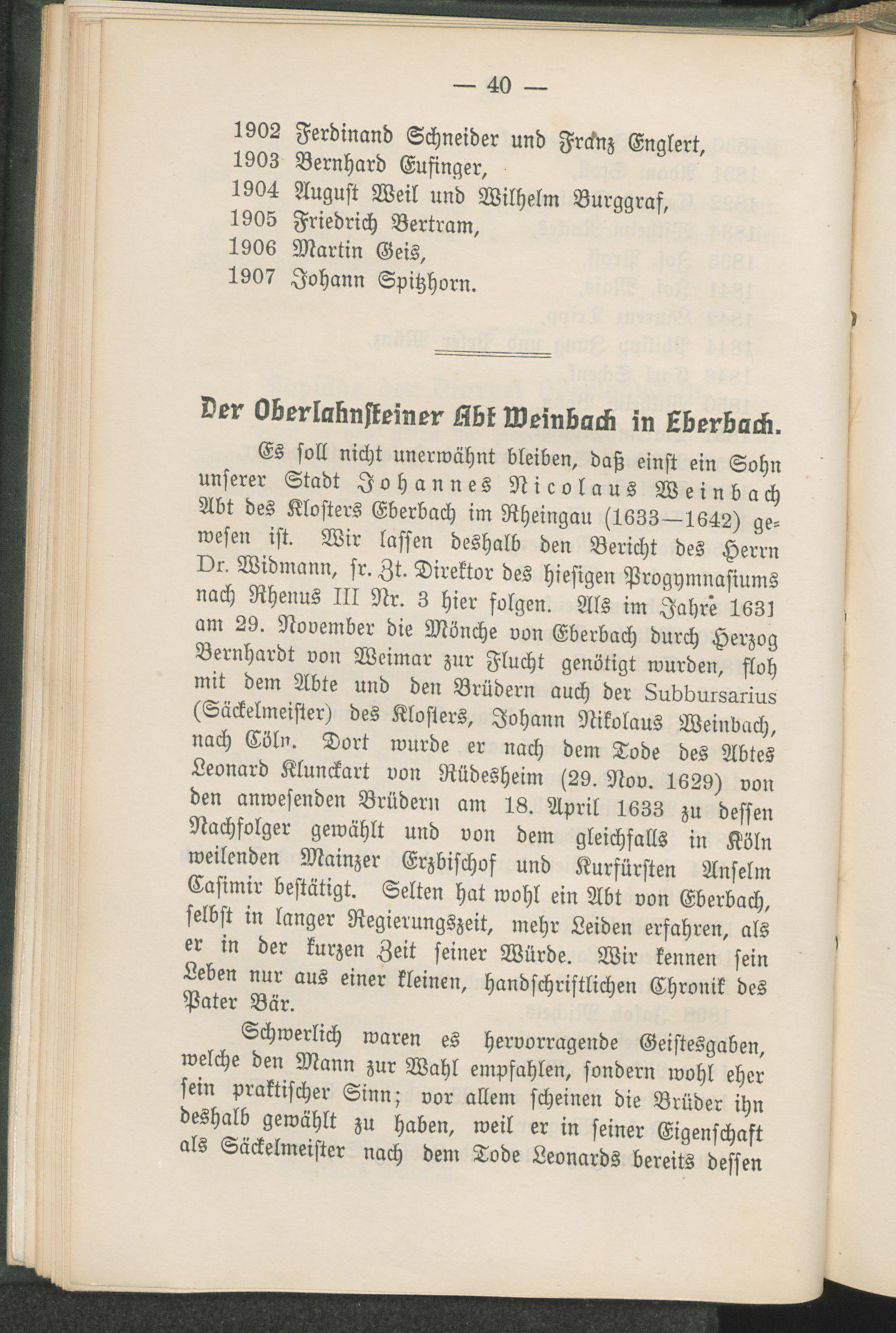 Der Oberlahnsteiner Abt Weinbach in Eberbach.
