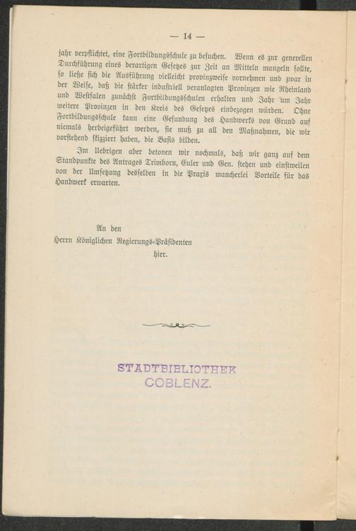 Gutachten über die Anträge der Abgeordneten Trimborn und Genossen Euler und Dr. Crüger und Genossen vom 24. Juni 1902, betreffend Förderung des Handwerks / Handwerkskammer zu Coblenz