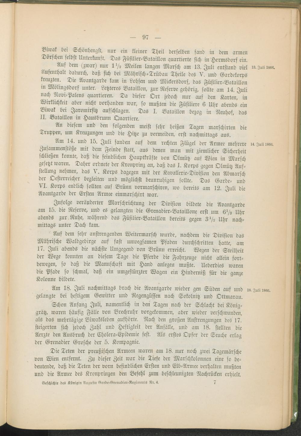 Vierter Theil. Die Theilnahme des Regiments an dem Feldzuge gegen Oesterreich 18...