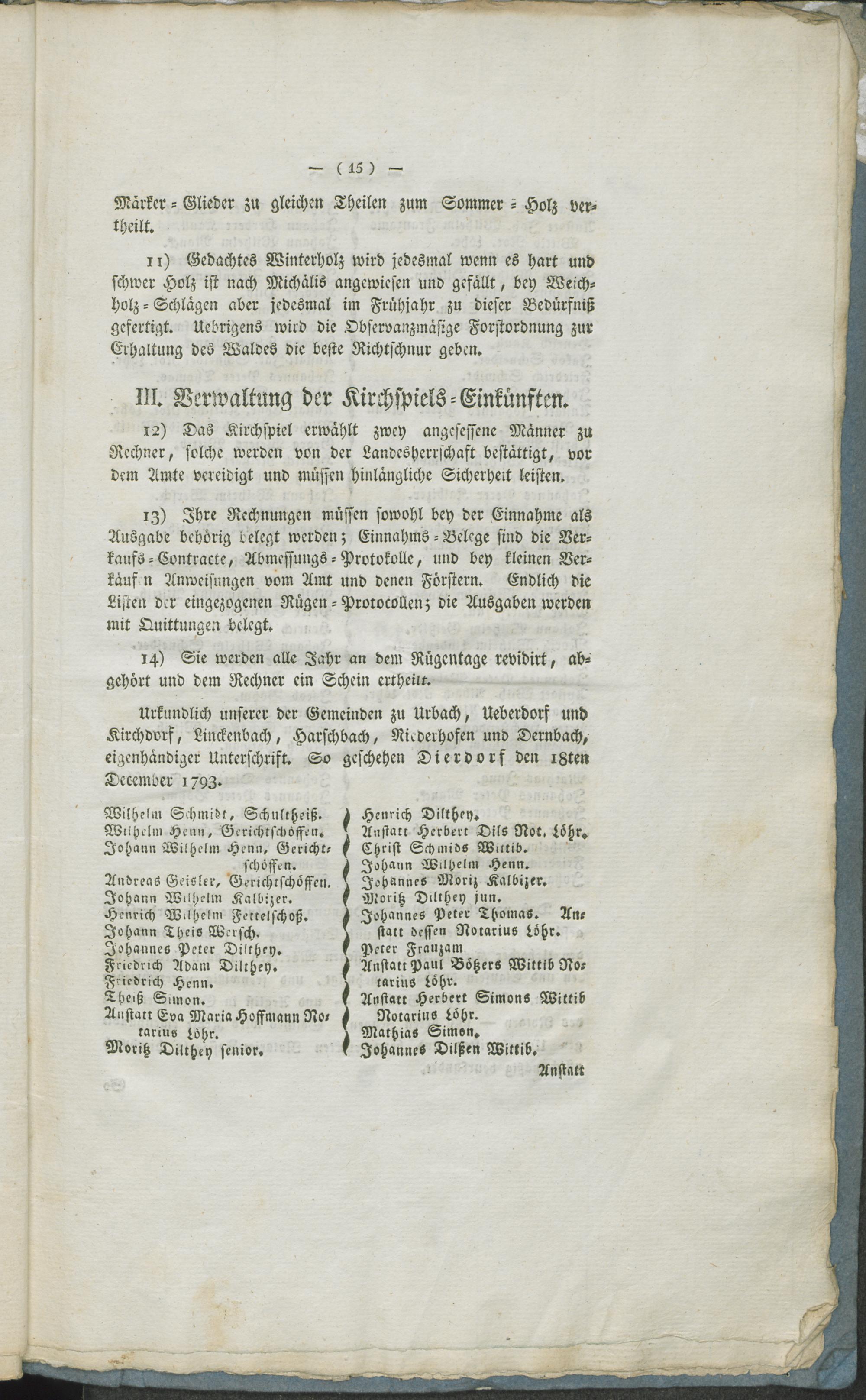 Kirchspiels Urbach Märker-Ordnung.