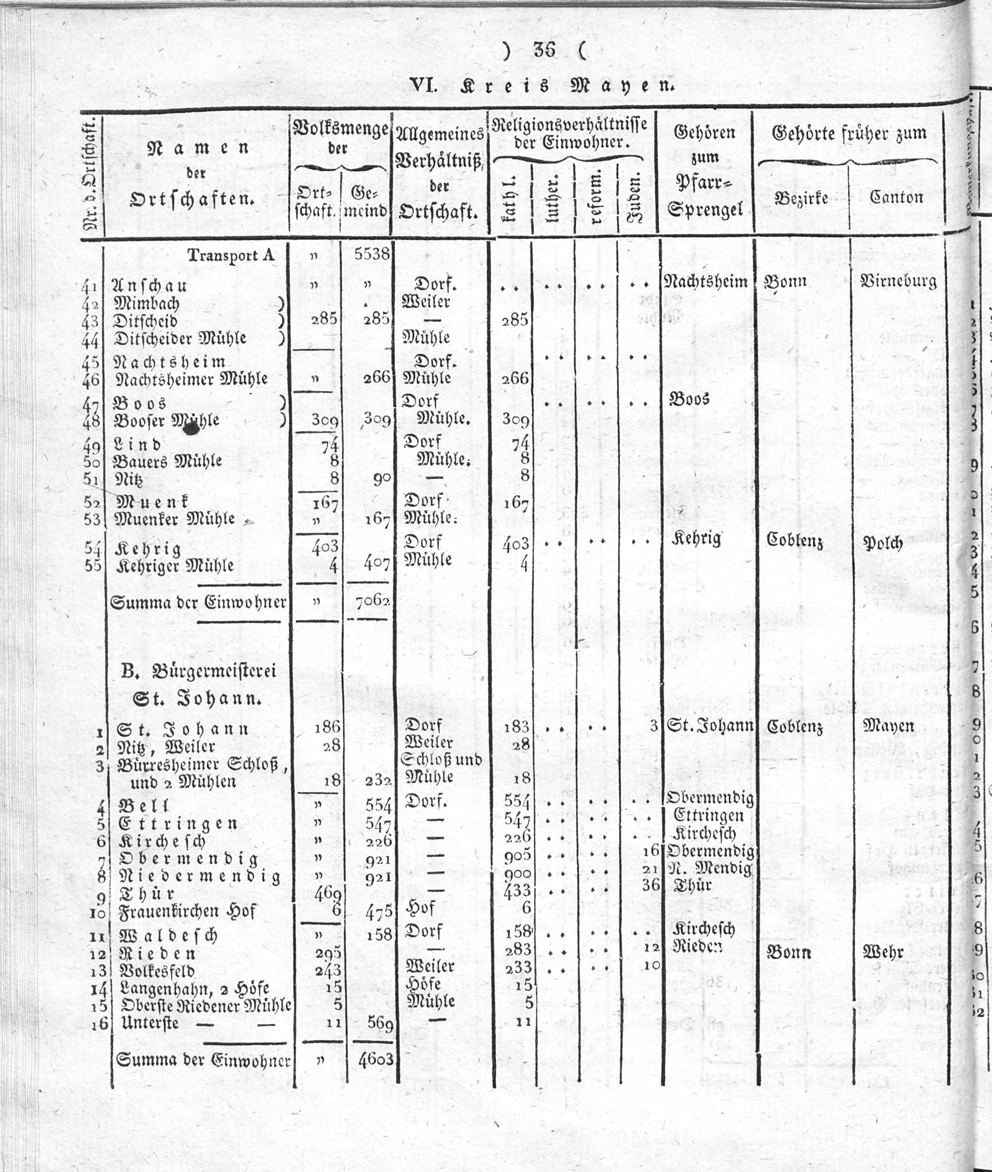 Der Regierungs-Bezirk Coblenz nach seiner Lage, Begränzung, Größe, Bevölkerung und Eintheilung, samt einem doppelten Ortschafts-Verzeichniße : [Verzeichniß sämmtlicher Ortschaften des Regierungs-Bezirks nach ihrer Eintheilung in Gemeinden, Bürgermeistereien und Kreise, mit Angabe der Volksmenge]