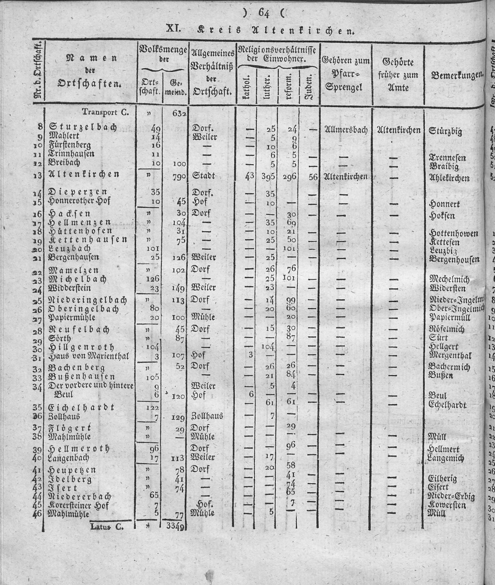 Der Regierungs-Bezirk Coblenz nach seiner Lage, Begränzung, Größe, Bevölkerung und Eintheilung, samt einem doppelten Ortschafts-Verzeichniße : [Verzeichniß sämmtlicher Ortschaften des Regierungs-Bezirks nach ihrer Eintheilung in Gemeinden, Bürgermeistereien und Kreise, mit Angabe der Volksmenge]