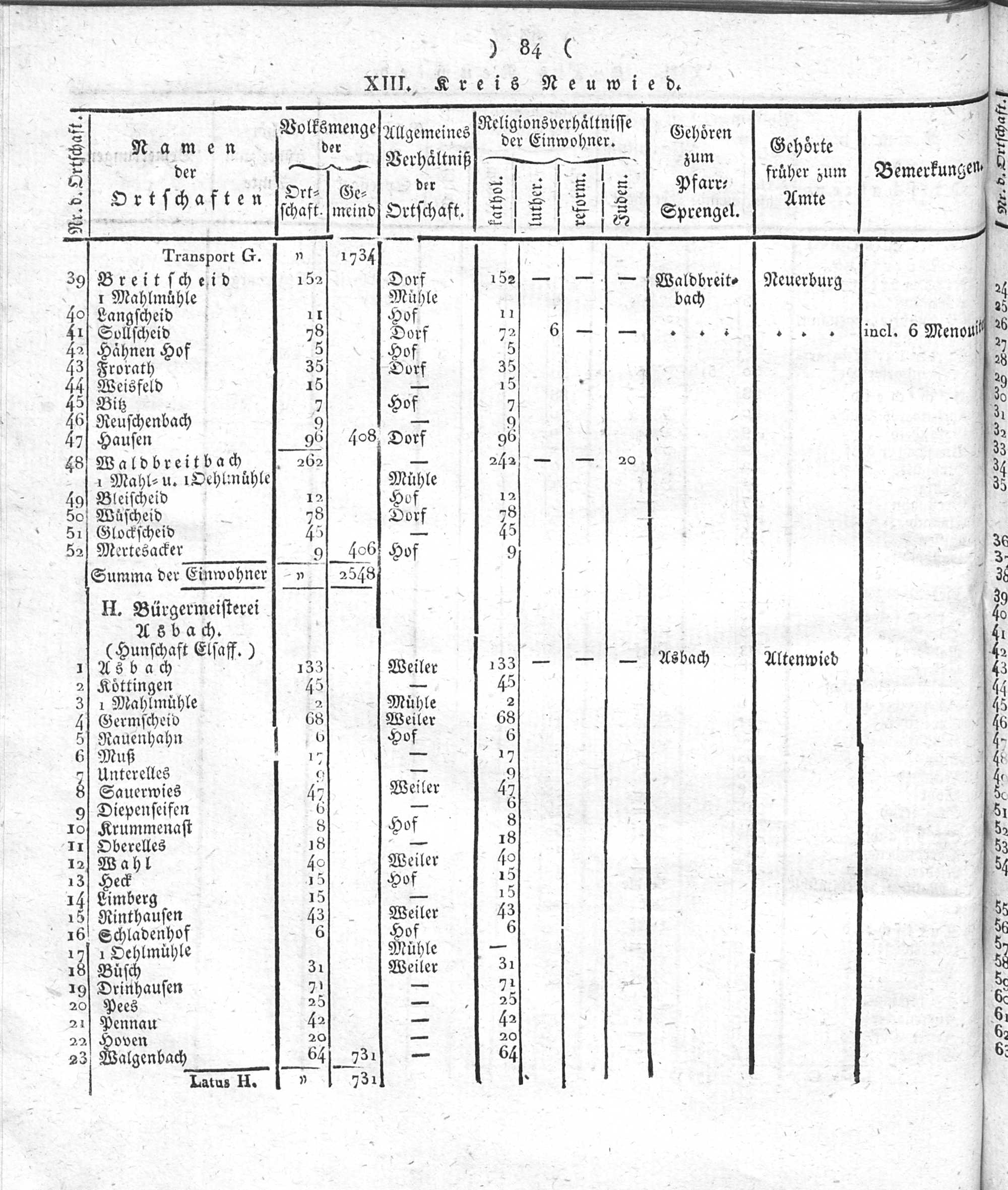 Der Regierungs-Bezirk Coblenz nach seiner Lage, Begränzung, Größe, Bevölkerung und Eintheilung, samt einem doppelten Ortschafts-Verzeichniße : [Verzeichniß sämmtlicher Ortschaften des Regierungs-Bezirks nach ihrer Eintheilung in Gemeinden, Bürgermeistereien und Kreise, mit Angabe der Volksmenge]