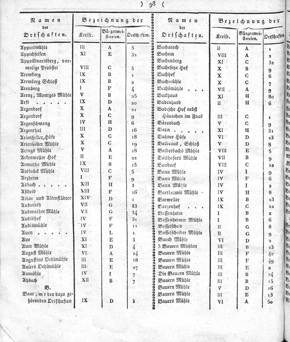 Der Regierungs-Bezirk Coblenz nach seiner Lage, Begränzung, Größe, Bevölkerung und Eintheilung, samt einem doppelten Ortschafts-Verzeichniße : [Verzeichniß sämmtlicher Ortschaften des Regierungs-Bezirks nach ihrer Eintheilung in Gemeinden, Bürgermeistereien und Kreise, mit Angabe der Volksmenge]