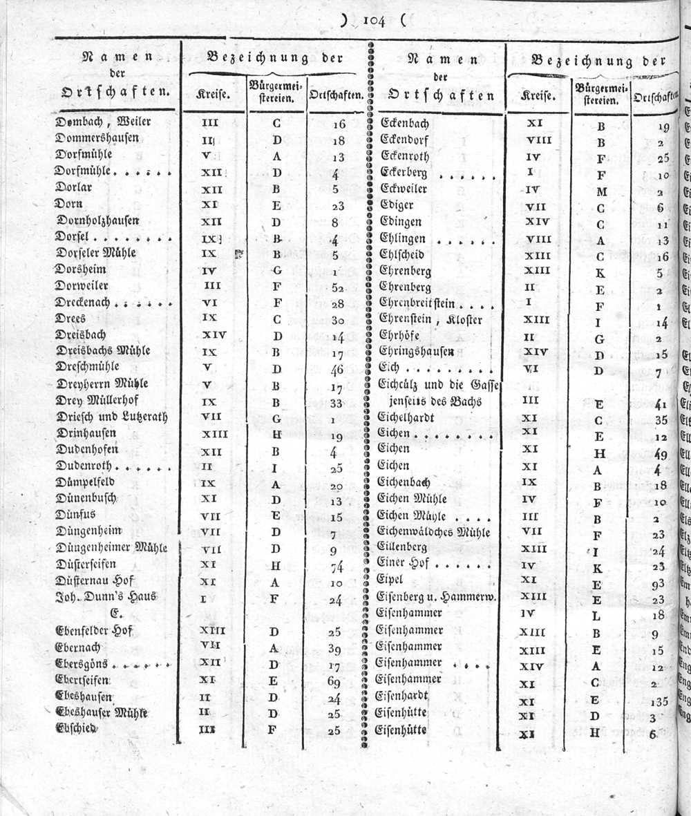 Der Regierungs-Bezirk Coblenz nach seiner Lage, Begränzung, Größe, Bevölkerung und Eintheilung, samt einem doppelten Ortschafts-Verzeichniße : [Verzeichniß sämmtlicher Ortschaften des Regierungs-Bezirks nach ihrer Eintheilung in Gemeinden, Bürgermeistereien und Kreise, mit Angabe der Volksmenge]