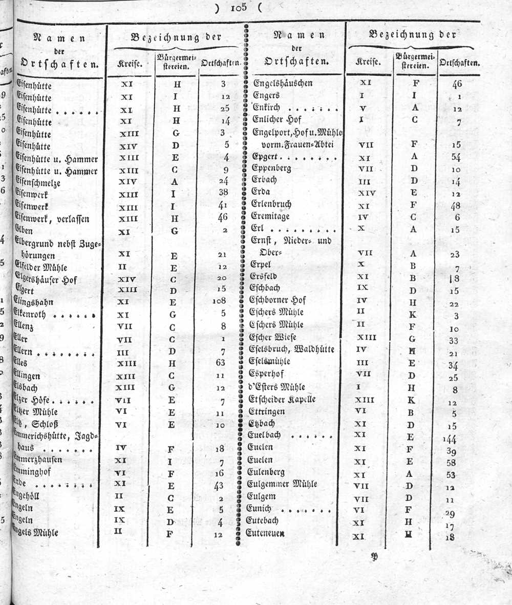 Der Regierungs-Bezirk Coblenz nach seiner Lage, Begränzung, Größe, Bevölkerung und Eintheilung, samt einem doppelten Ortschafts-Verzeichniße : [Verzeichniß sämmtlicher Ortschaften des Regierungs-Bezirks nach ihrer Eintheilung in Gemeinden, Bürgermeistereien und Kreise, mit Angabe der Volksmenge]