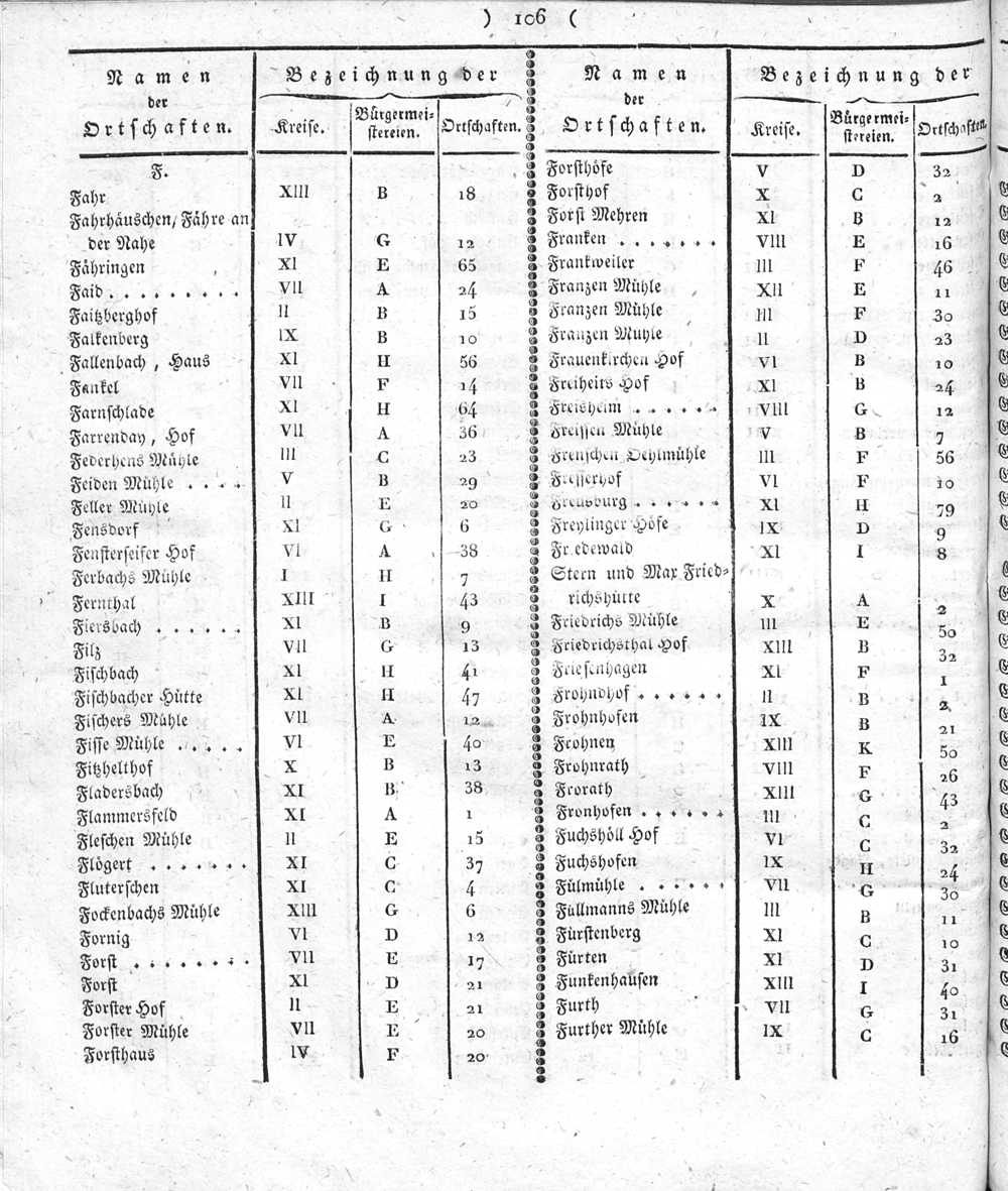 Der Regierungs-Bezirk Coblenz nach seiner Lage, Begränzung, Größe, Bevölkerung und Eintheilung, samt einem doppelten Ortschafts-Verzeichniße : [Verzeichniß sämmtlicher Ortschaften des Regierungs-Bezirks nach ihrer Eintheilung in Gemeinden, Bürgermeistereien und Kreise, mit Angabe der Volksmenge]