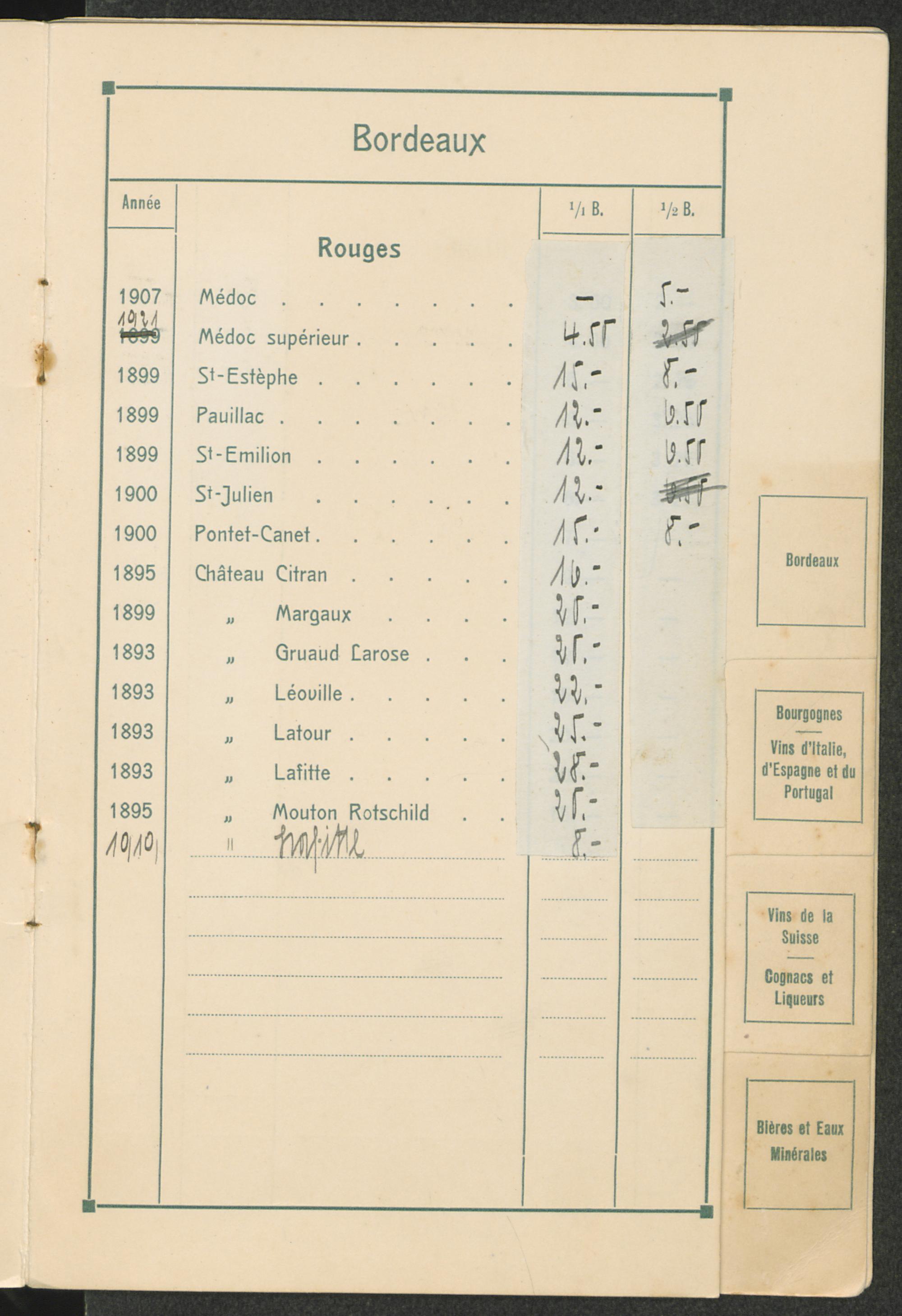 Cartes des vins/Grand Hotel, Brunnen