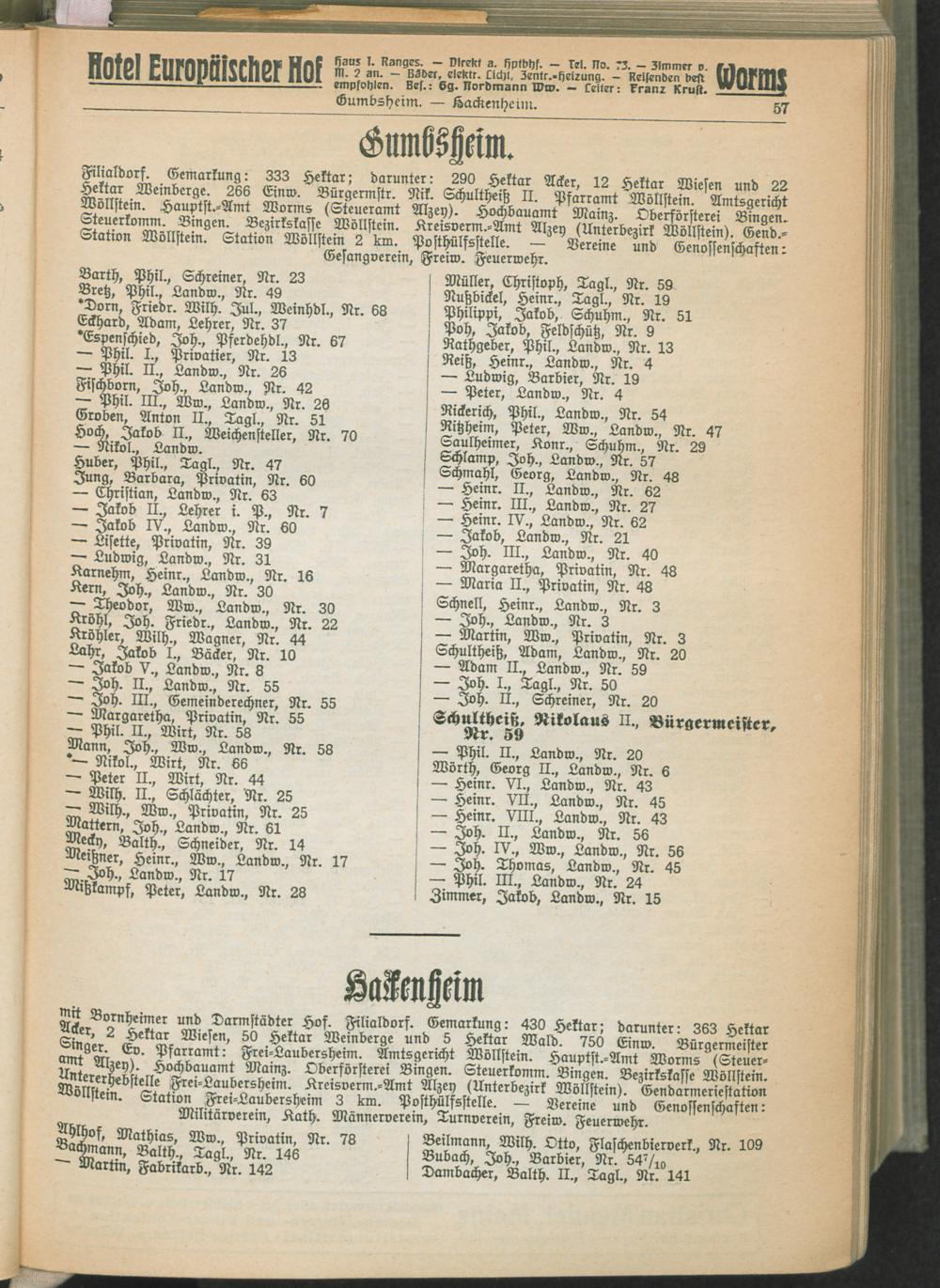 I. Teil. Behörden und Einwohner-Verzeichnisse der Kreise der Provinz Rheinhessen...