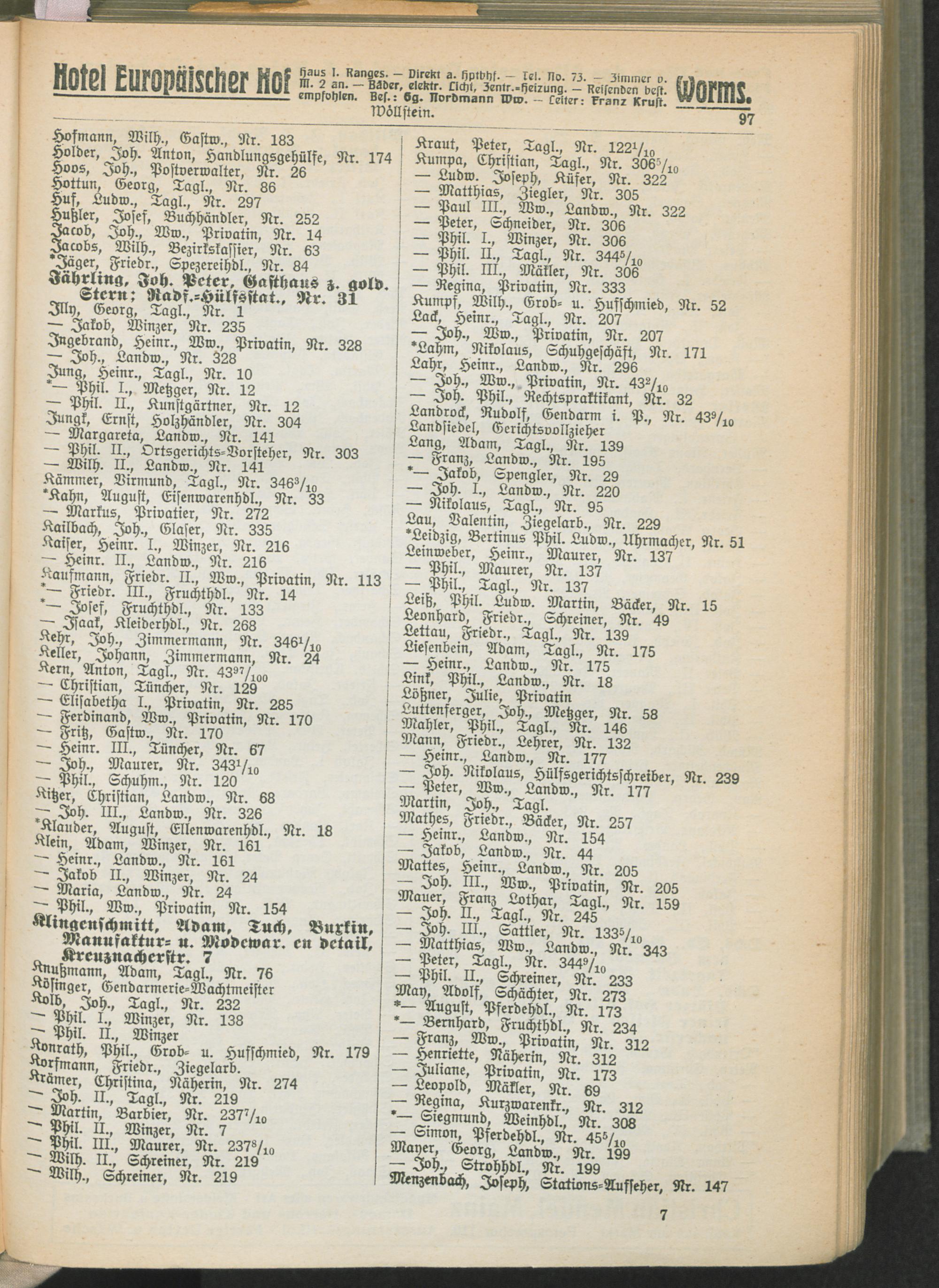 II. Teil. Eintragene Handelsfirmen und andere Geschäfte der Städte Darmstadt, Offenbach, Mainz, Worms und Gießen.