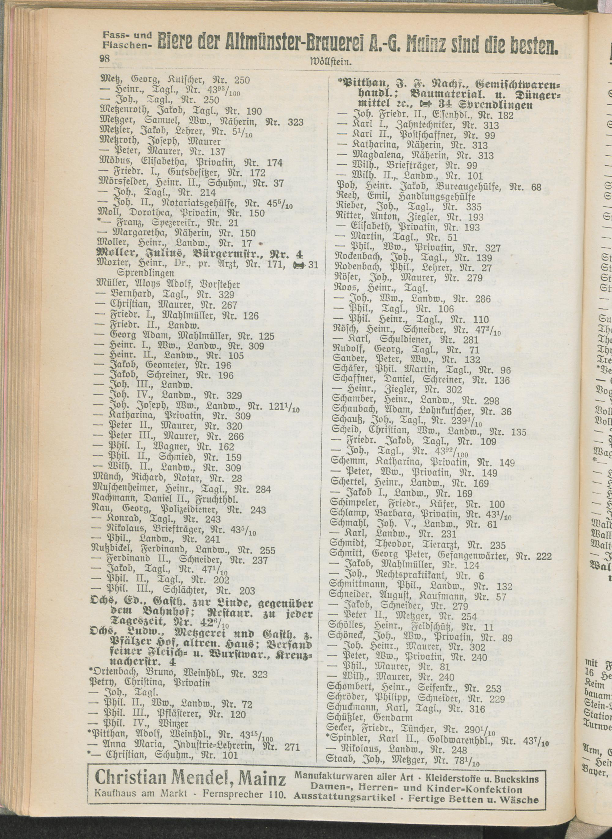 IV. Teil. Nach Geschäftszweigen geordnetes Verzeichnis der Vorausbesteller des Landes-Adreßbuches. / Inserate.