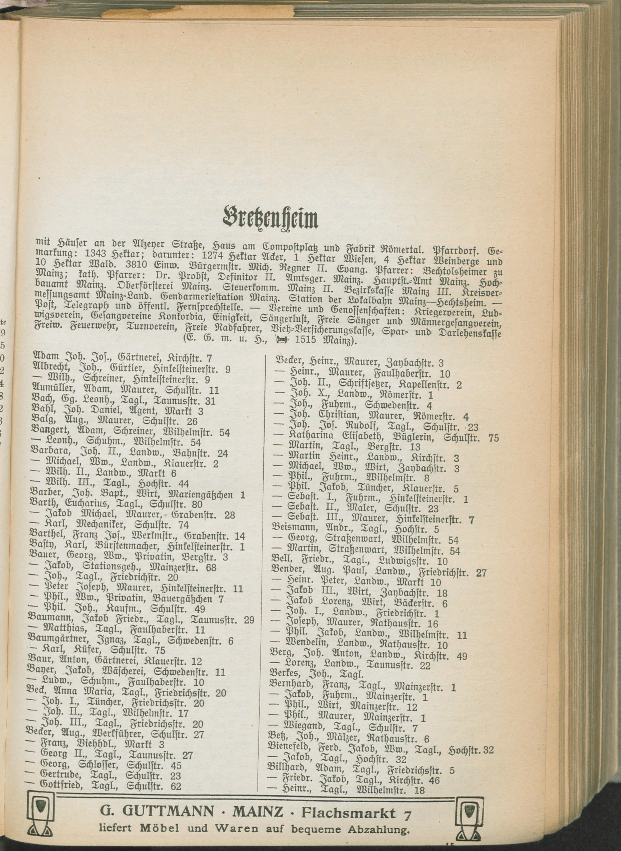 I. Teil. Behörden und Einwohner-Verzeichnisse der Kreise der Provinz Rheinhessen...