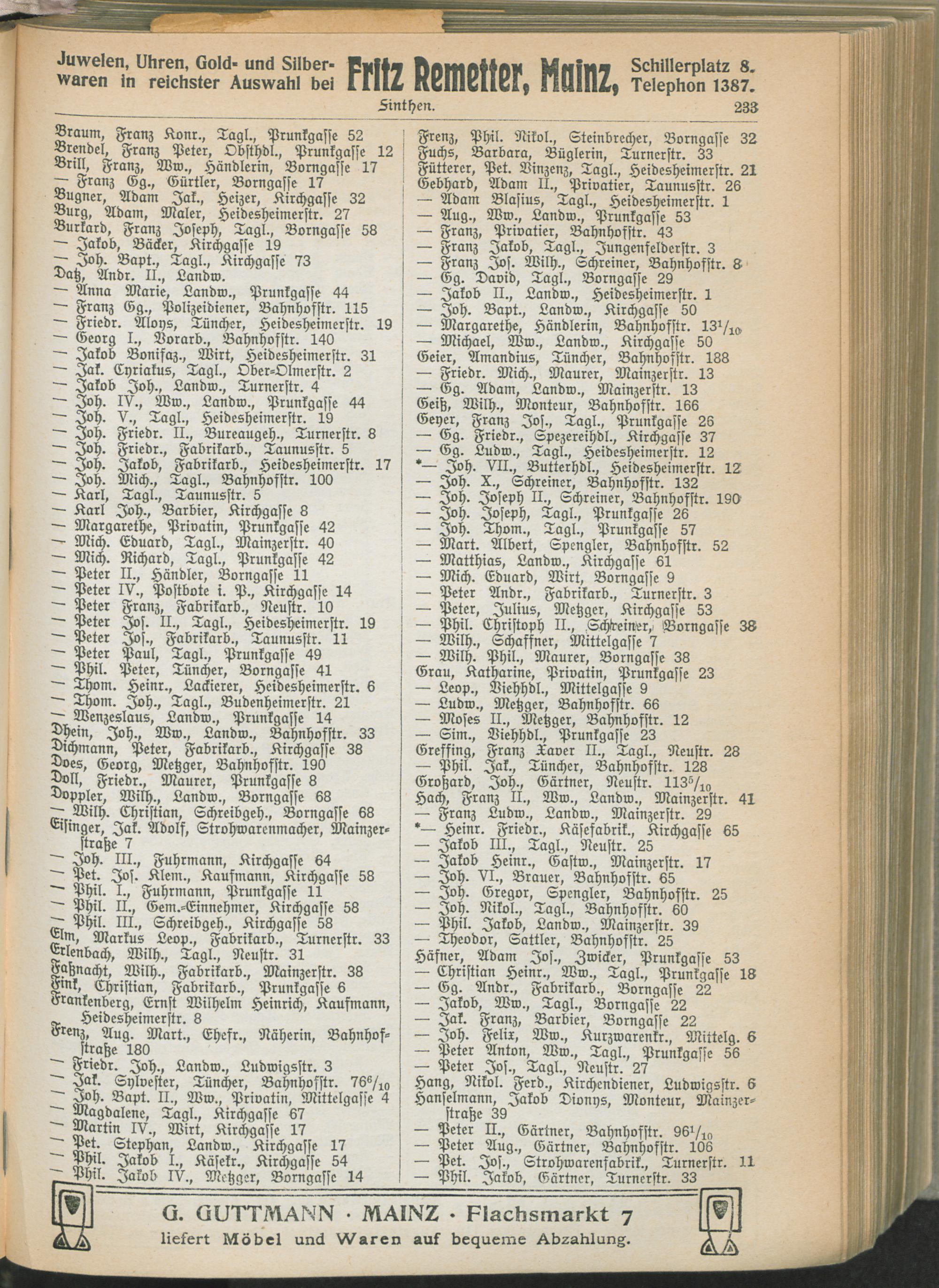 II. Teil. Eintragene Handelsfirmen und andere Geschäfte der Städte Darmstadt, Offenbach, Mainz, Worms und Gießen.