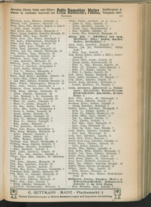 II. Teil. Eintragene Handelsfirmen und andere Geschäfte der Städte Darmstadt, Offenbach, Mainz, Worms und Gießen.