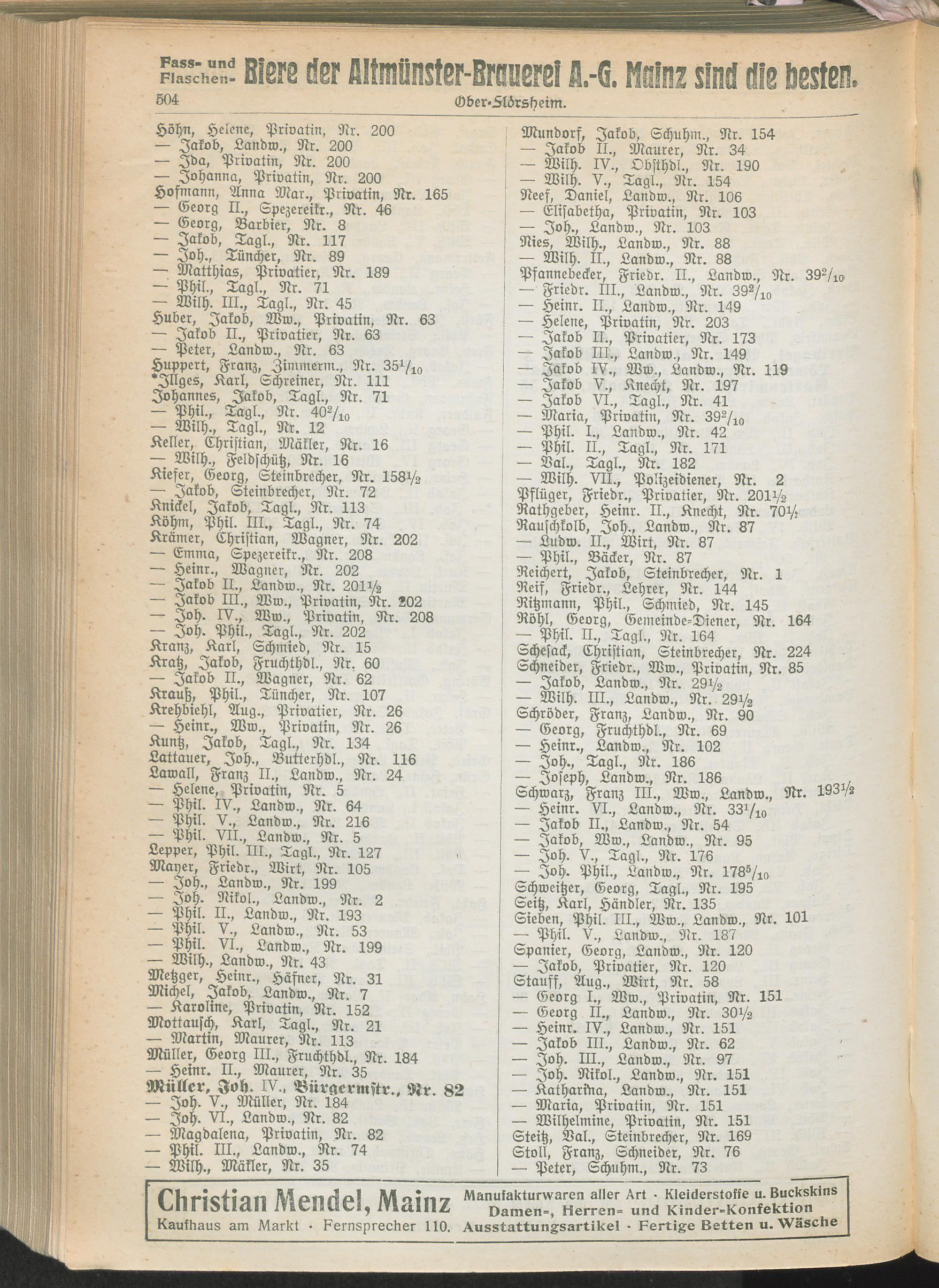 II. Teil. Eintragene Handelsfirmen und andere Geschäfte der Städte Darmstadt, Offenbach, Mainz, Worms und Gießen.