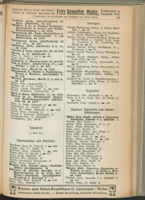 II. Teil. Eintragene Handelsfirmen und andere Geschäfte der Städte Darmstadt, Offenbach, Mainz, Worms und Gießen.