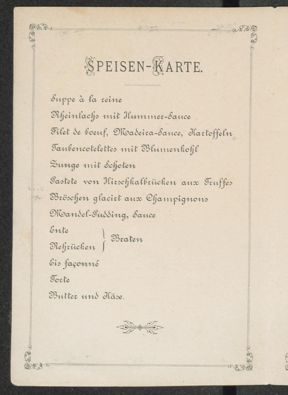 Speisen- und Weinkarte zum 68jährigen Stiftungs-Feste der Saxonia zu Leipzig : Sonntag, den 8. August 1880