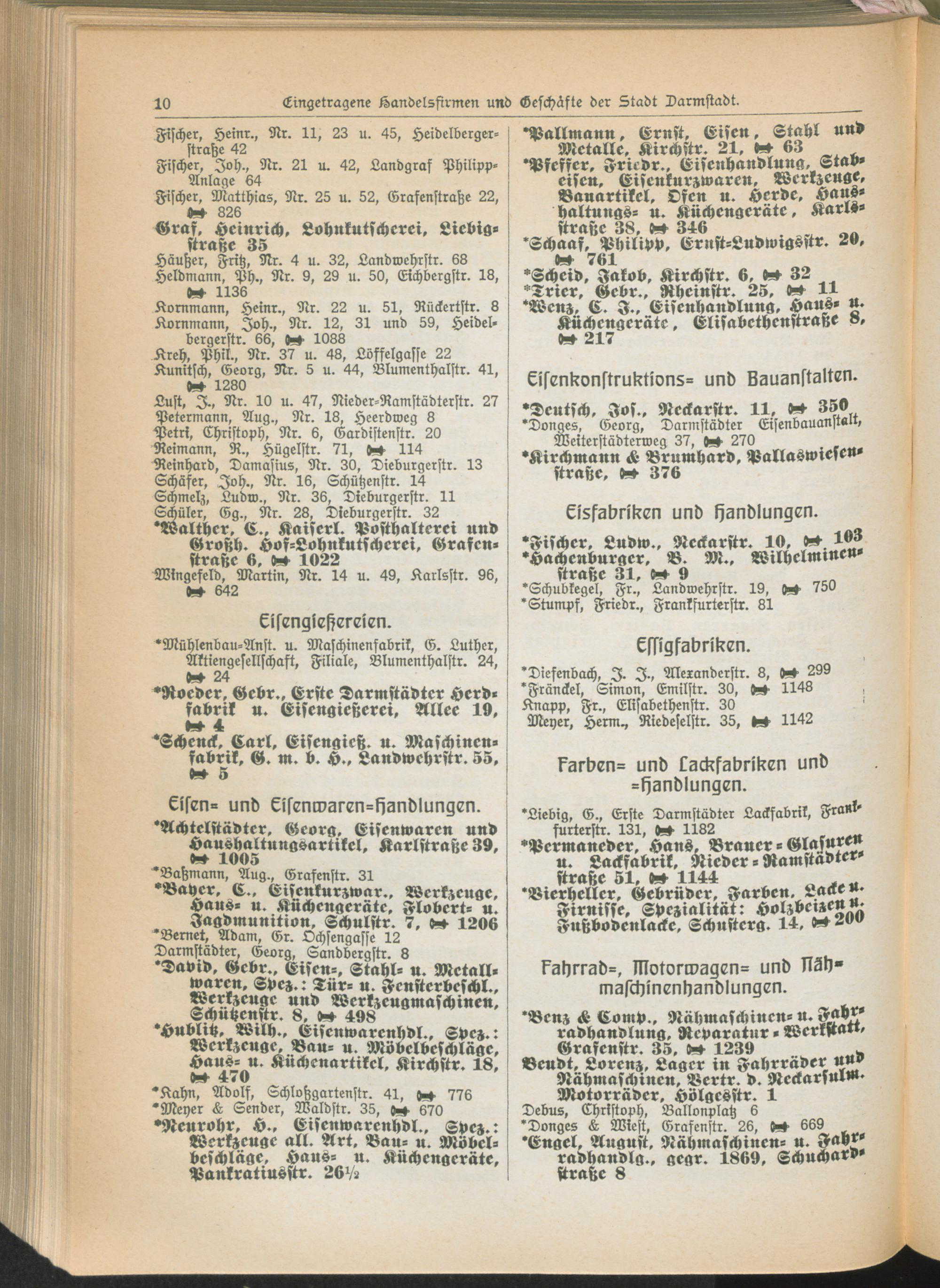 II. Teil. Eintragene Handelsfirmen und andere Geschäfte der Städte Darmstadt, Offenbach, Mainz, Worms und Gießen.