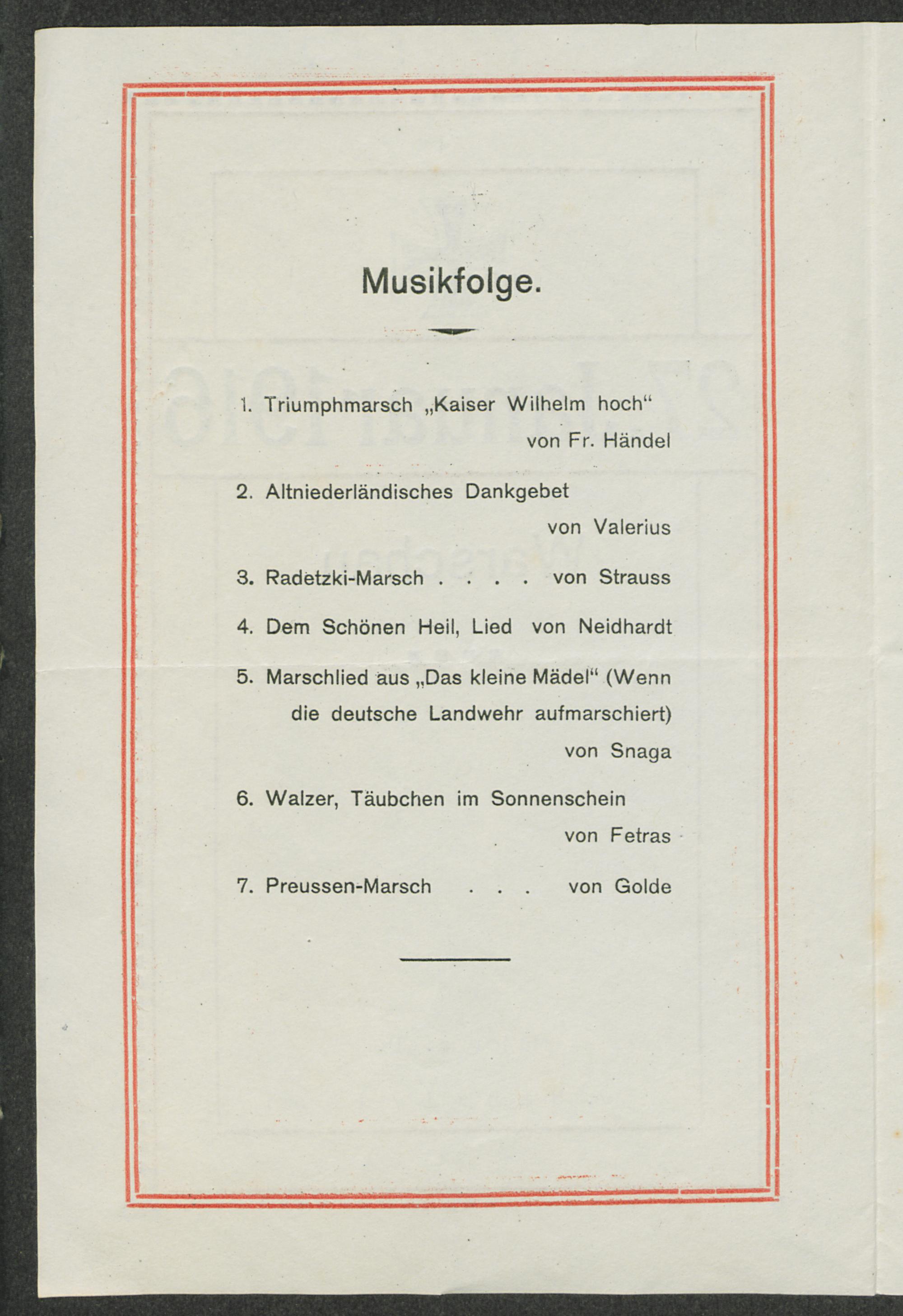 Musikfolge, Speisenfolge, Weine : 27. Januar 1916, Warschau