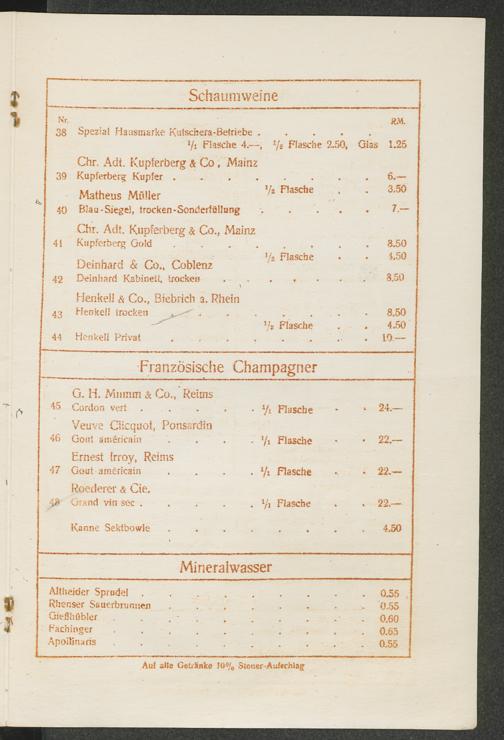 Wein- und Getränke-Karte/Zigeuner-Keller, Berlin W 15