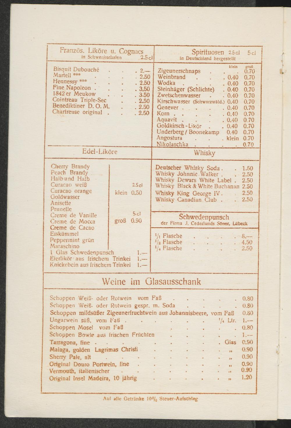 Wein- und Getränke-Karte/Zigeuner-Keller, Berlin W 15