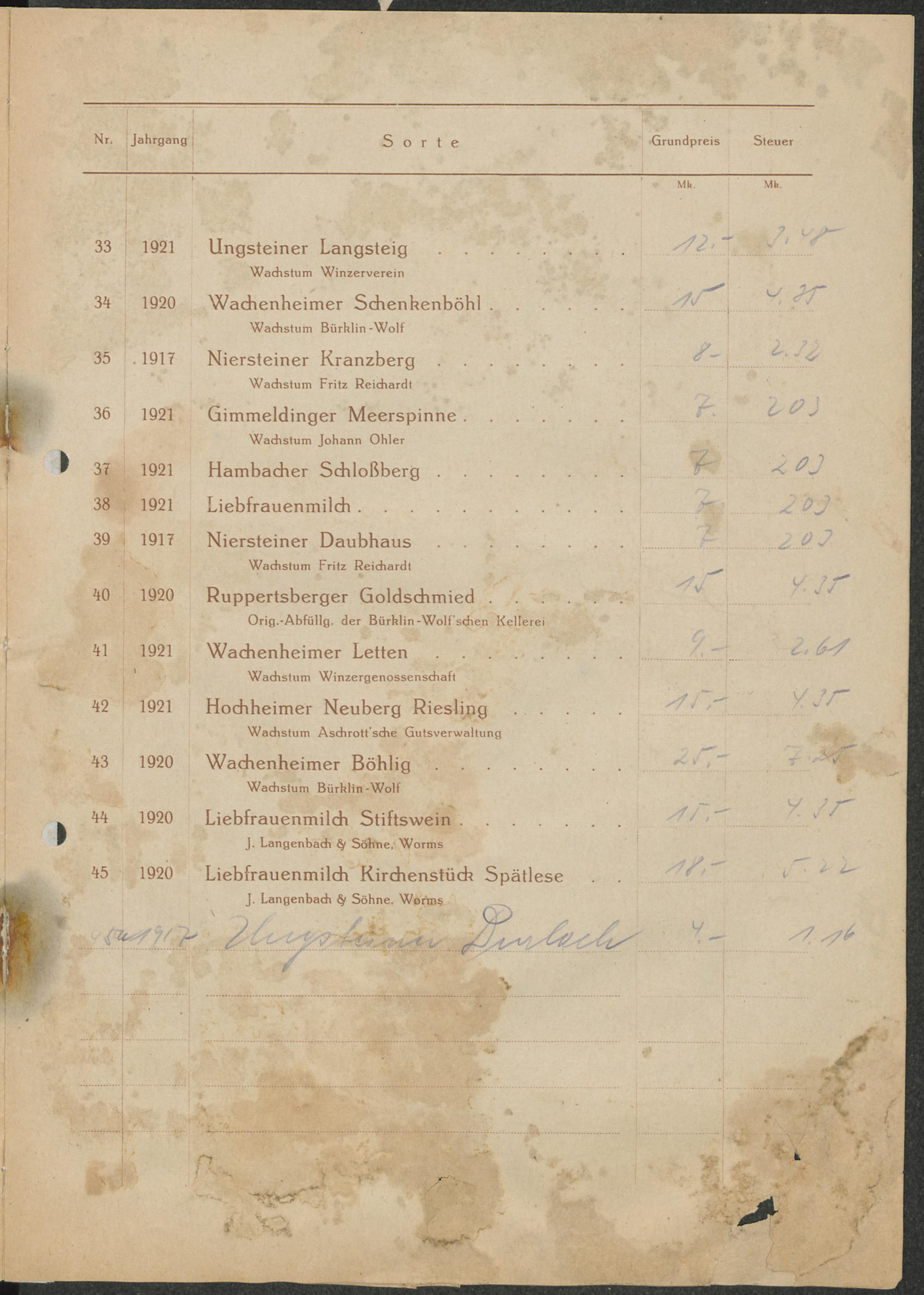 Burgunder-Weine / Schaum-Weine / Schankweine (offen) / Südweine