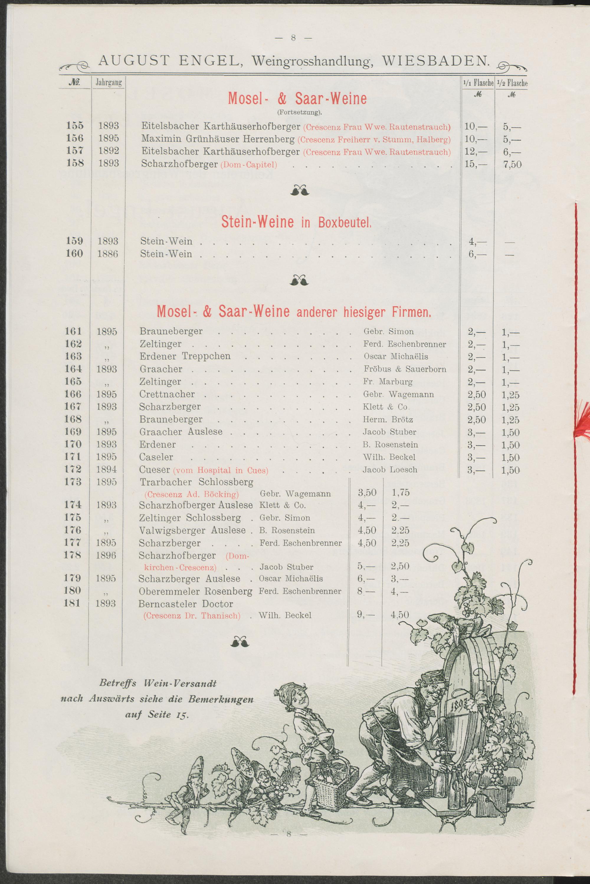 Mosel- und Saar-Weine aus den Kellereien der Weingrosshandlung August Engel.
