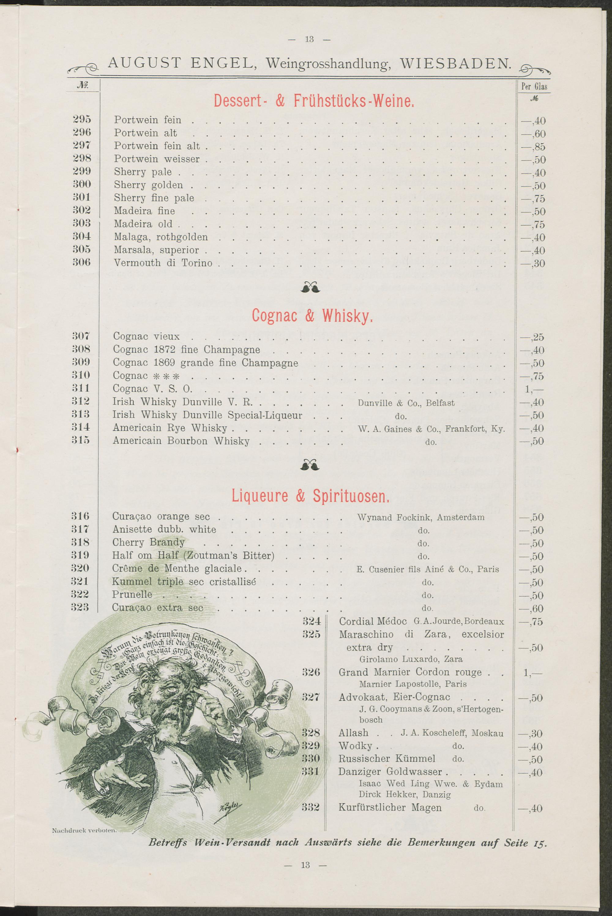 Dessert- & Frühstücks-Weine. / Cognac & Whisky. / Liqueure & Spirituosen.