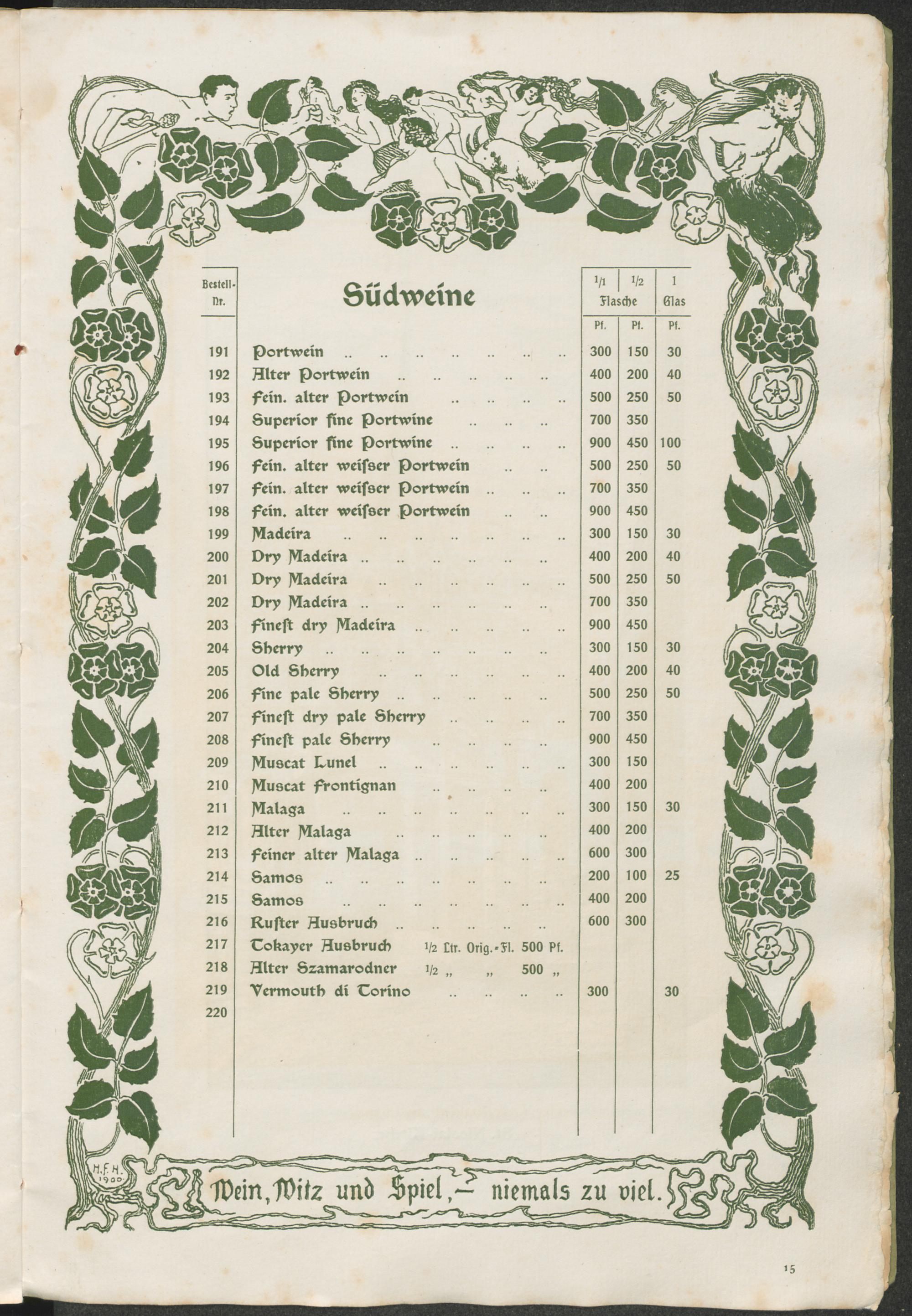 Weinkarte/Lüneburger Rats-Weinkeller : Weine von der Firma J. Frederich, Kgl. Hofweinhändler, Lüneburg